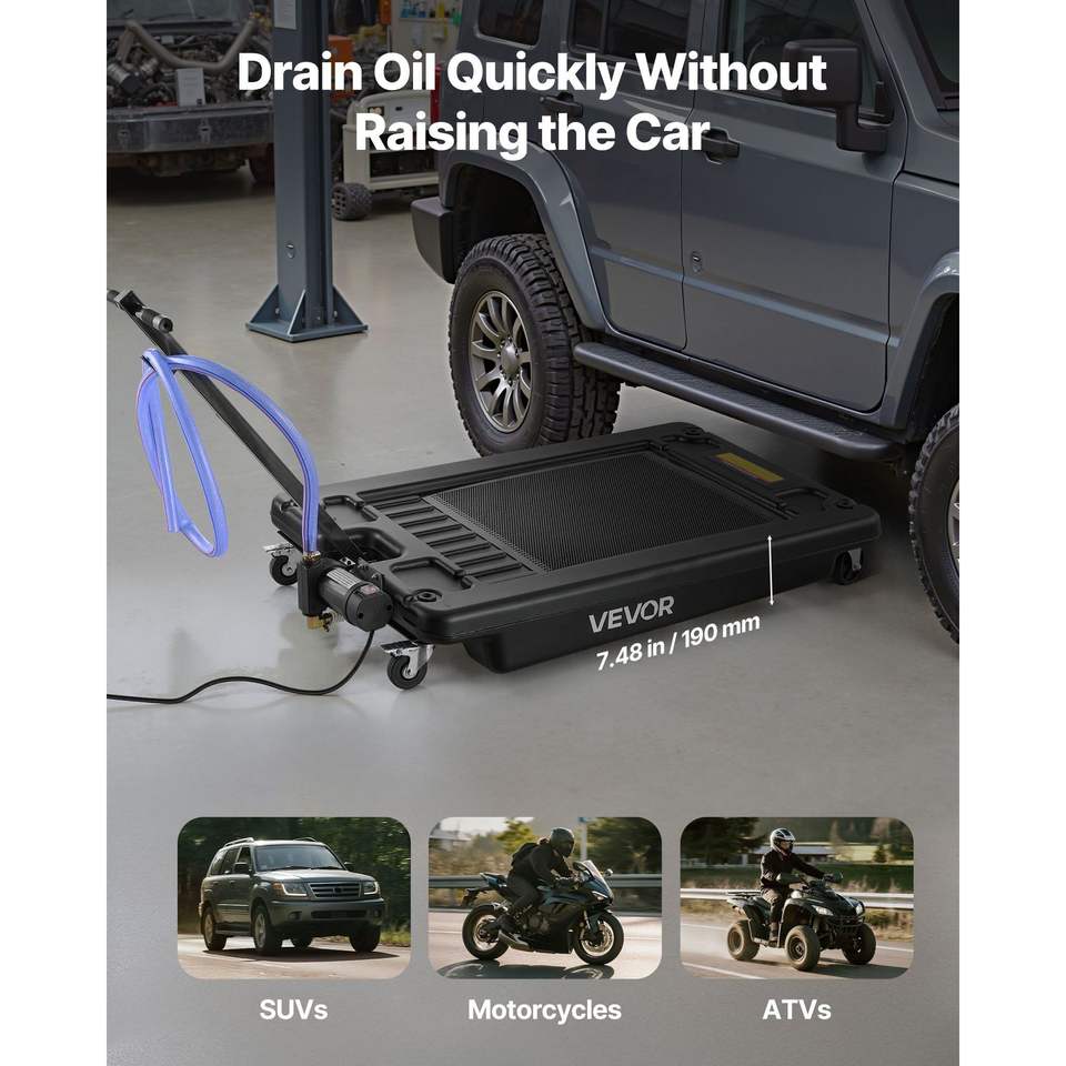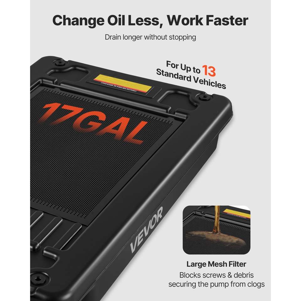 Vasca di raccolta olio a basso profilo da 17 galloni con pompa elettrica da 180W e tubo pieghevole da 2,5 m – Strumento per autoriparazioni per un cambio olio pratico