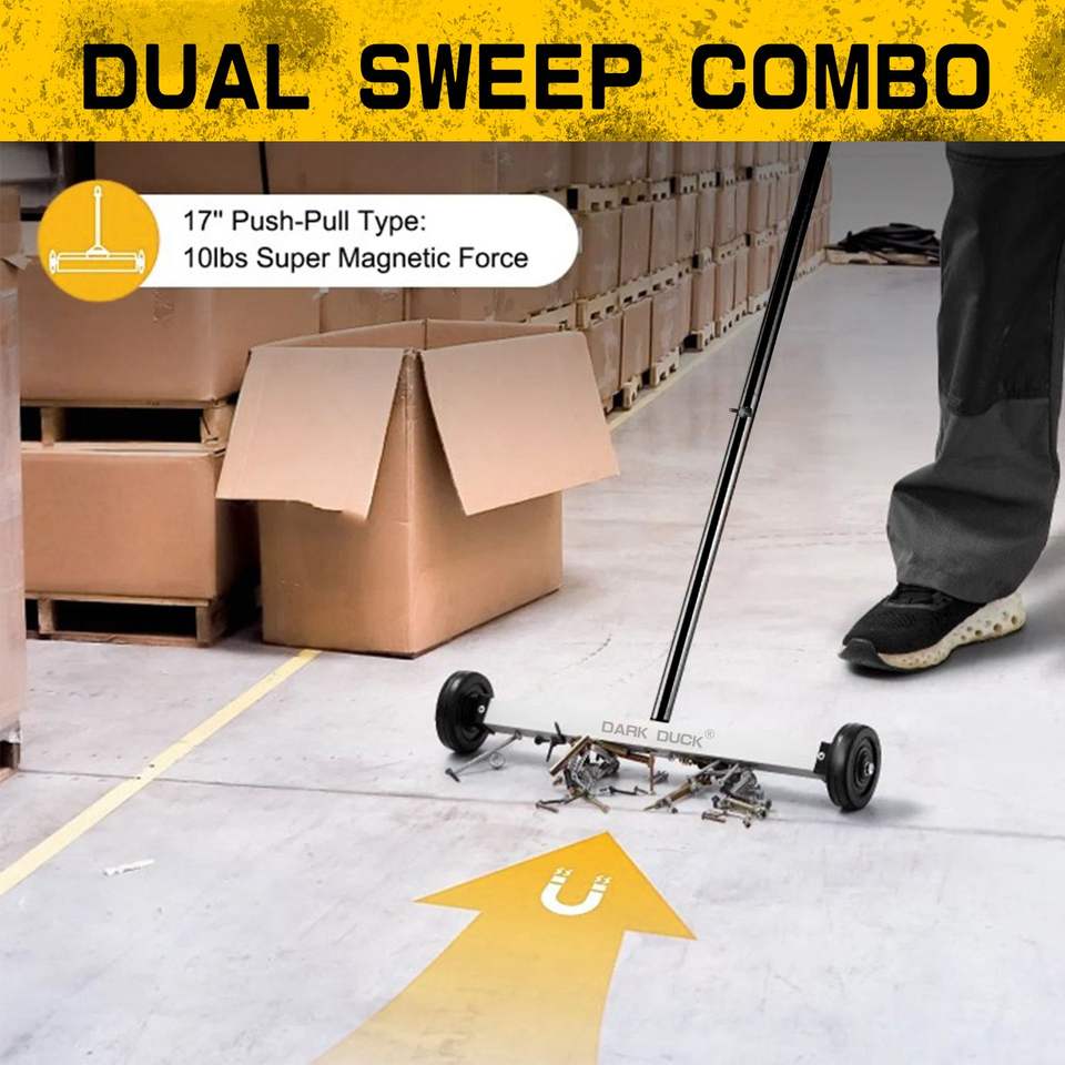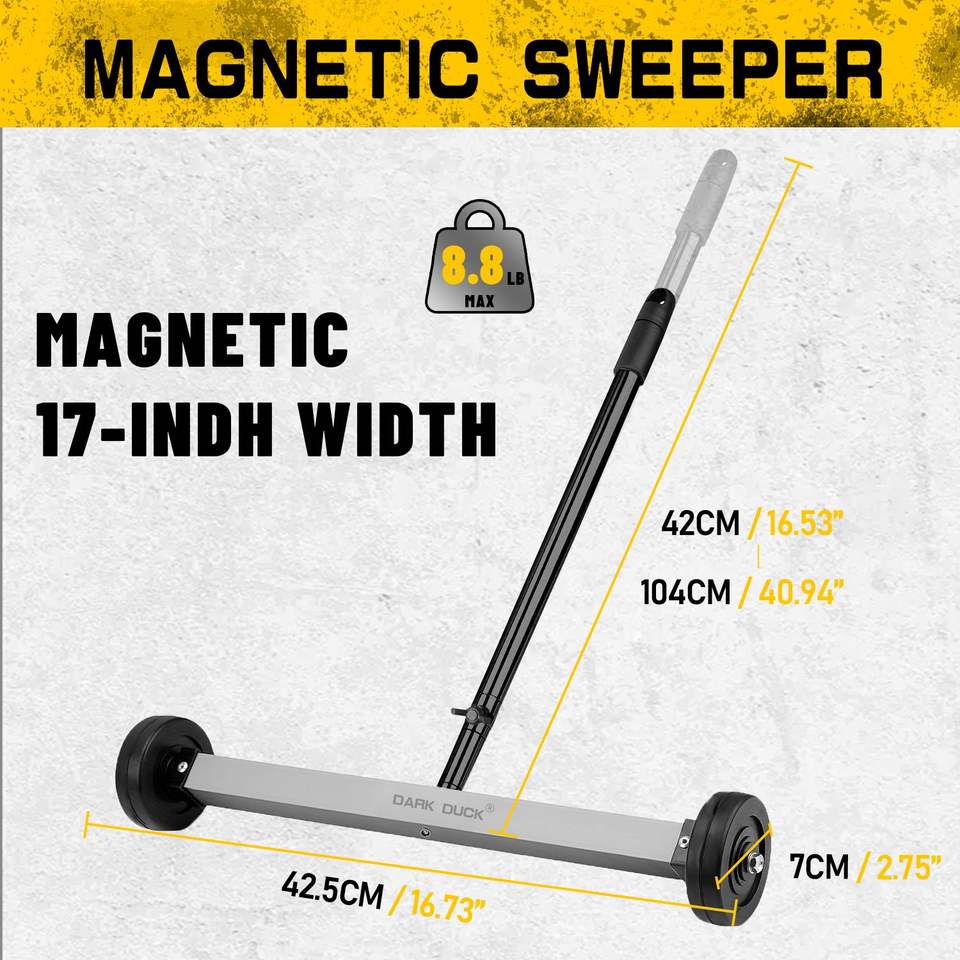 17-Inch Adjustable Handle Rolling Magnetic Sweeper Wheels 8.8-Pound Capacity Heavy-Duty Magnet Pick Nails for Floor Cleaning