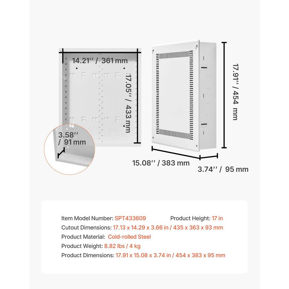 Kit Scatola di Gestione Cavi da Incasso a Parete da 17 Pollici, Contenitore Strutturato per Cavi e Accessori Multimediale con Accessori per la Gestione dei Cavi