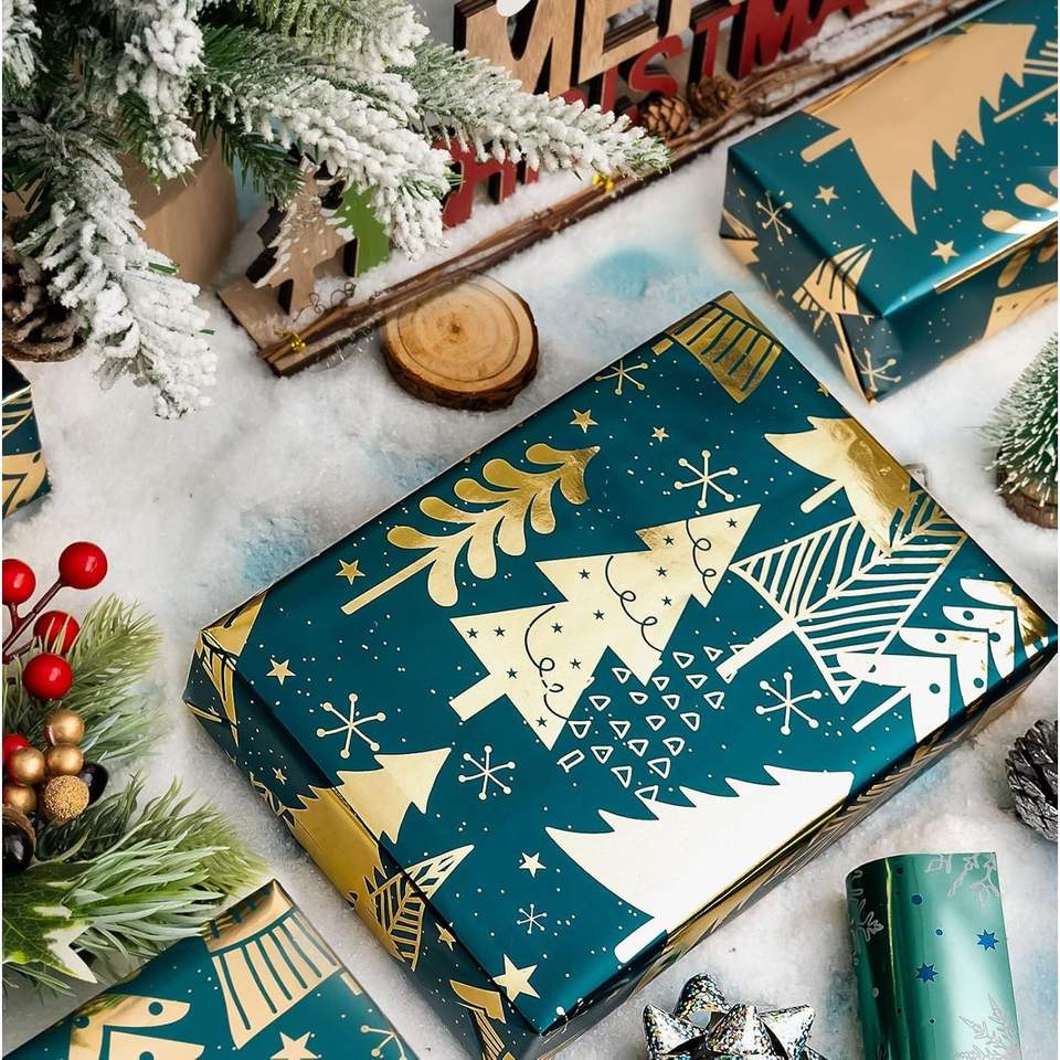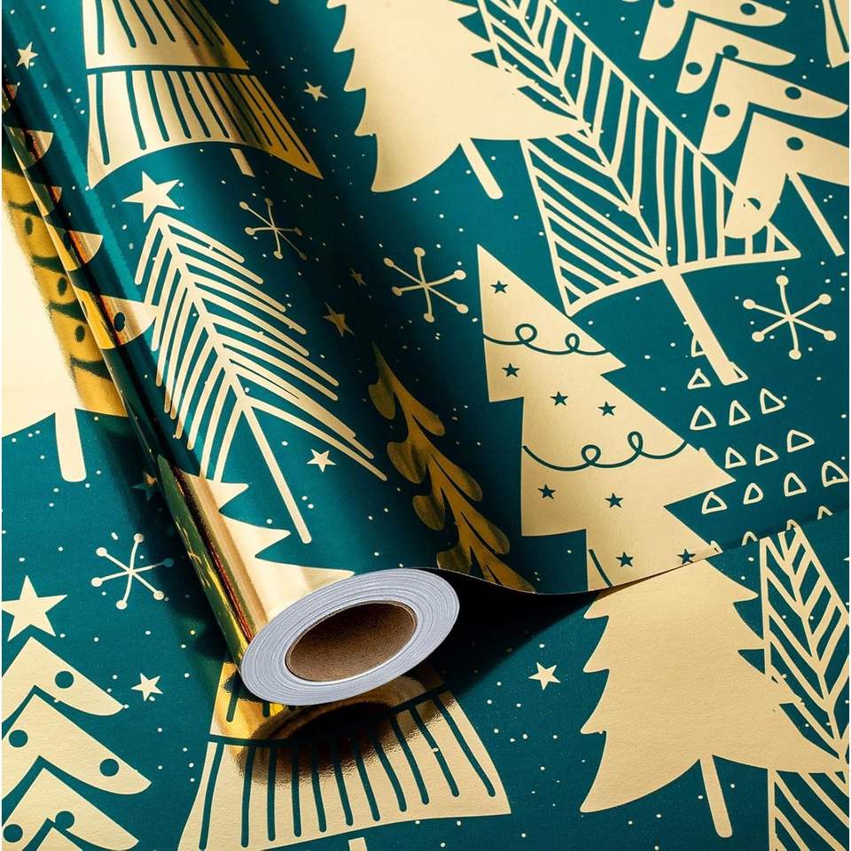 Carta da Regalo Natalizia Verde Metallizzata di Lusso 17 Pollici X 33 Piedi, Elegante Carta Festiva per Confezioni Regalo Invernali