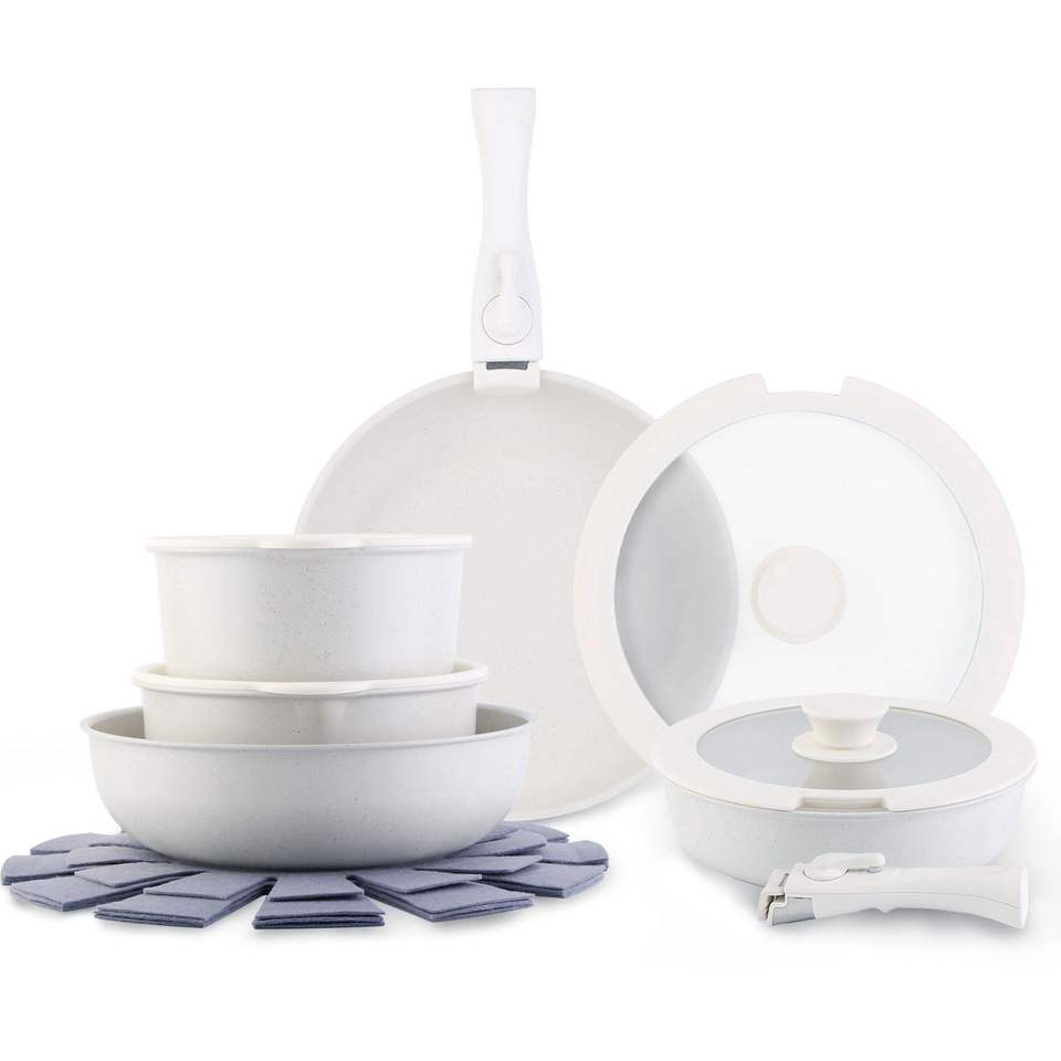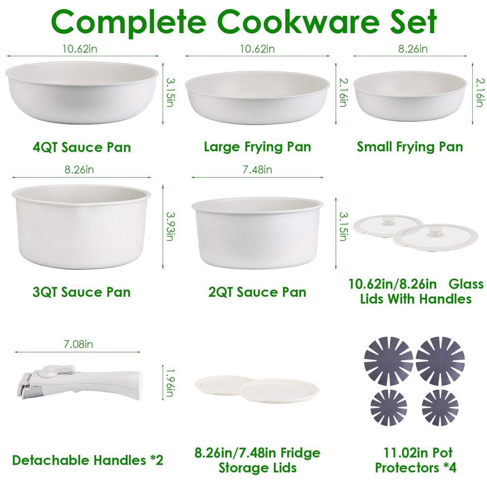 Set di Pentole Antiaderenti per Induzione da 17 Pezzi con Manici Staccabili, Padella e Pentola per Salse a Riscaldamento Rapido per Uso in Cucina