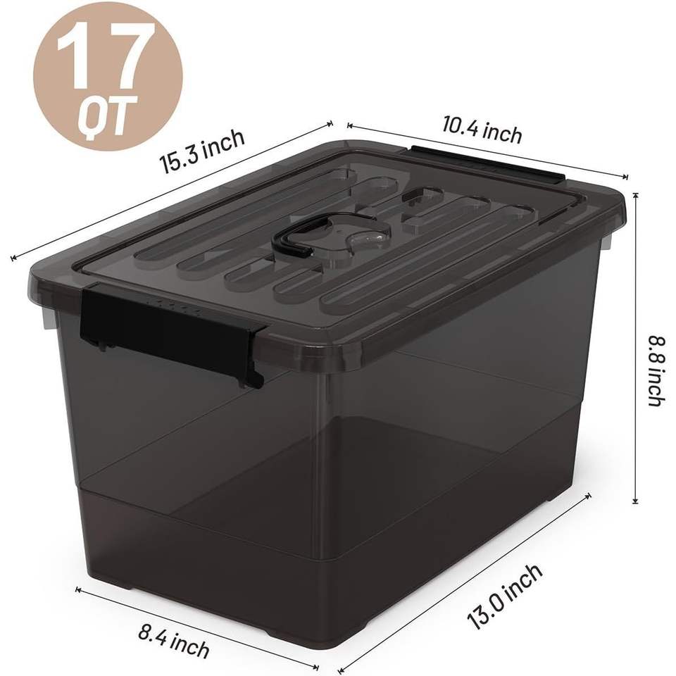 Contenitori di Plastica per Organizzazione da 17 Qt con Coperchi a Chiusura Ermetica, Set da 5, Grandi Contenitori Impilabili per Garage