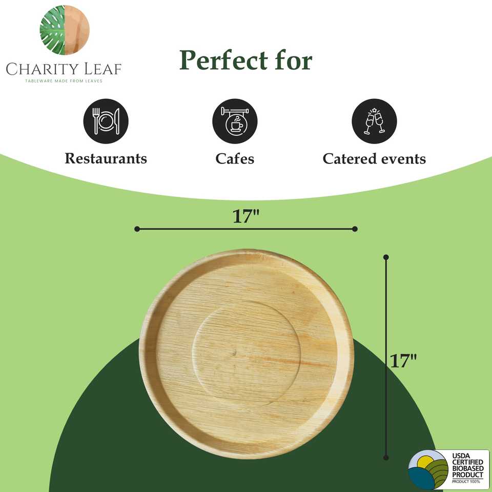 Vassoio Rotondo in Foglia di Palma Naturale da 17 Pollici, Elegante Stoviglie e Decorazione per Tavola