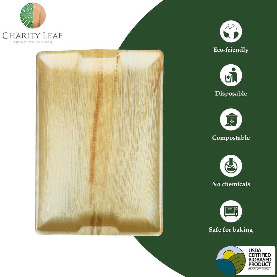 Vassoio in Foglia di Palma Naturale 17 x 12 Pollici - Decorazioni e Articoli per Feste