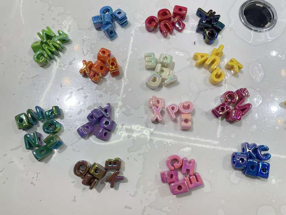 170 Pcs Chunky Plastic Mobile Phone Chain Bead Acrylic UV Plated Iridescent Large Hole 20mm Alphabet Letter Beads