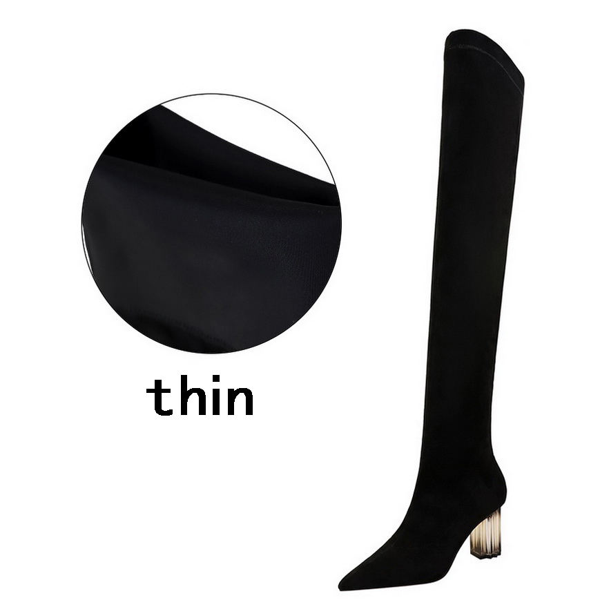 1718-13 Bigtree Women's Shoes Fashion Transparent Crystal with High Heel Pointed Suede Sexy Slim Pedicure Over the Knee Boots
