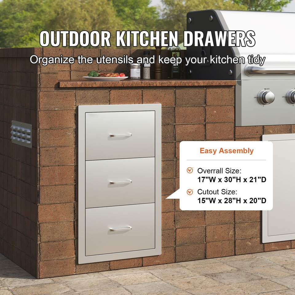 17W X 30H X 21D Inch Outdoor Kitchen Stainless Steel Storage Combo Double Access Drawers Paper Towel Holder for BBQ Island Grill