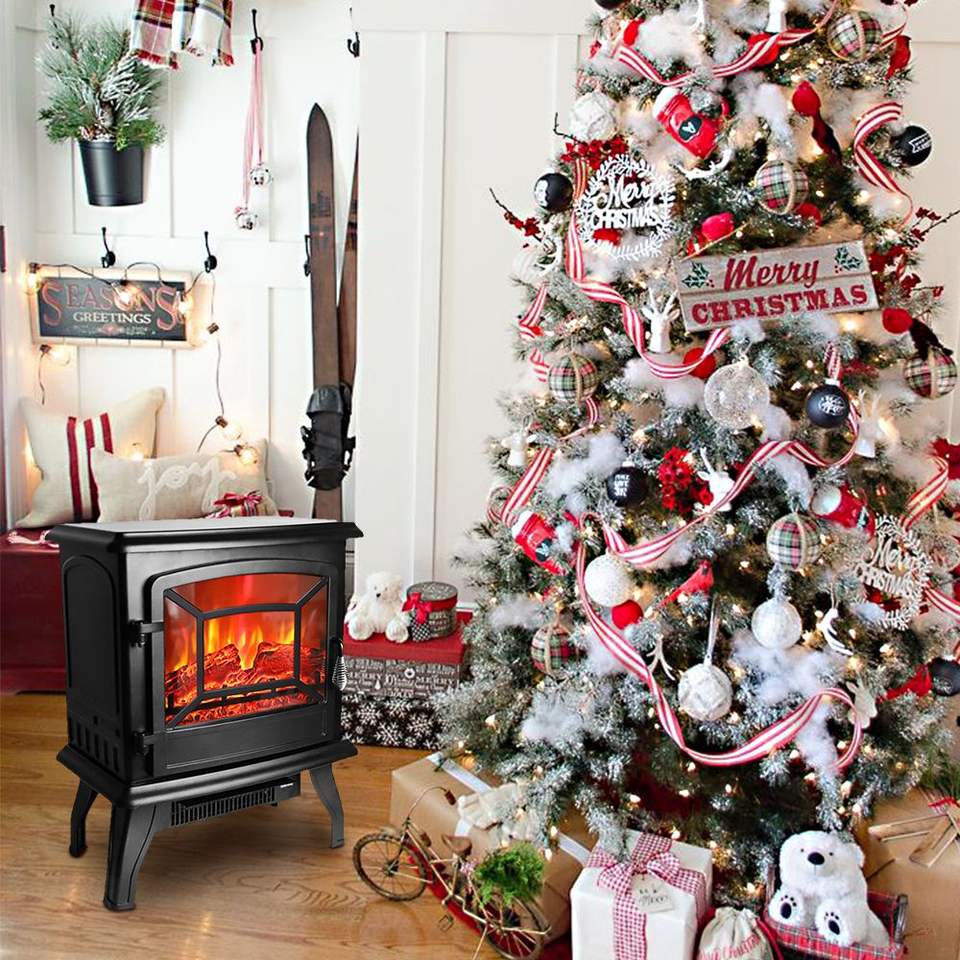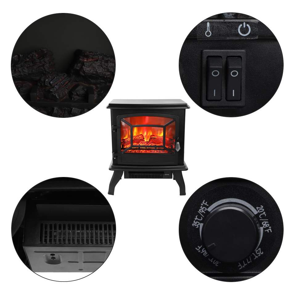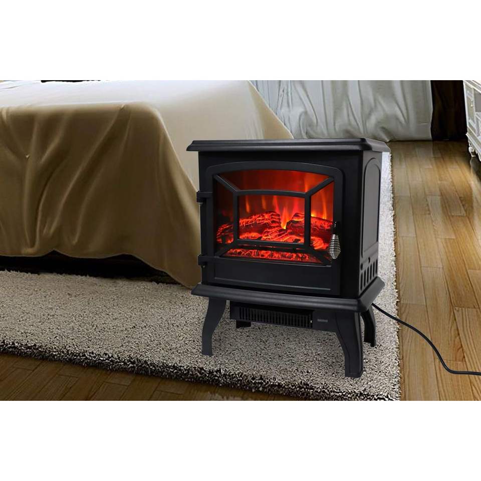 17inch Freestanding Electric Fireplace 1400W Single Color Heating Wire Rocker Flame Switch Temperature Control Knob NTC