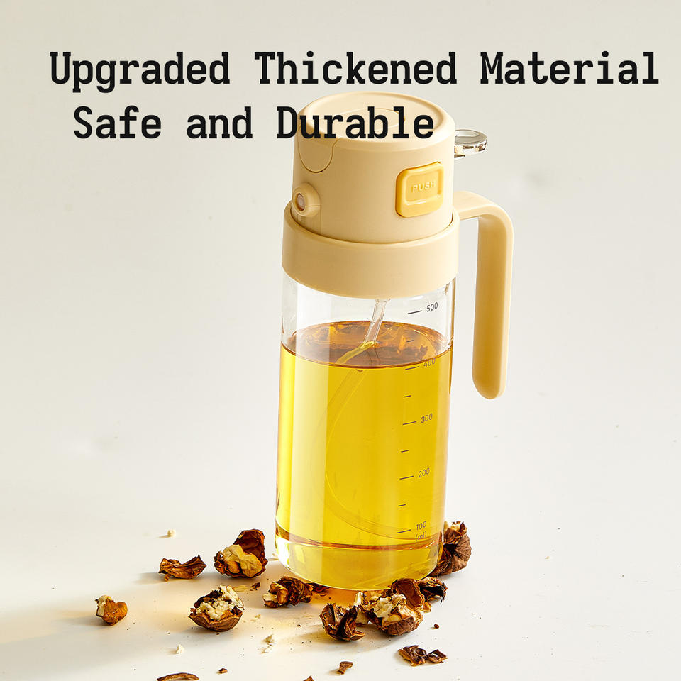 17oz Oil Sprayer and Dispenser 2 in 1 One Hand 500 Ml High Borosilicate Glass Olive Oil Spray Pourer Bottle for Cooking Salad