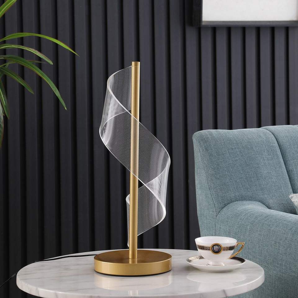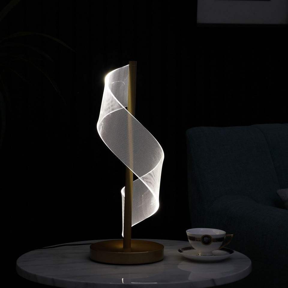 Lampada da Tavolo LED Moderna in Acrilico con Effetto Ondulato a S, Finitura Oro Spazzolato, Dinamo in Acrilico, 47,6 cm