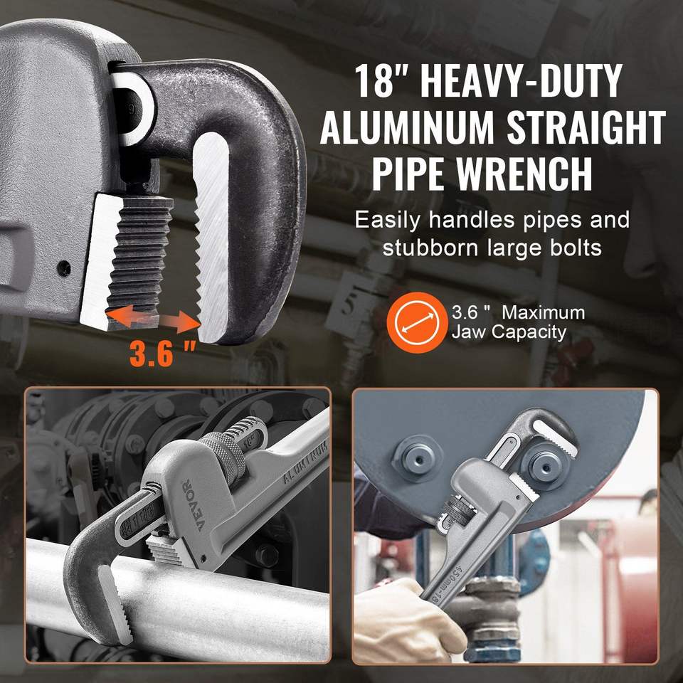 Chiave a Tubo Dritta in Alluminio da 18 Pollici con Impugnatura Ergonomica Regolabile e Mandrino ad Alta Resistenza, Strumento Idraulico Facile da Usare