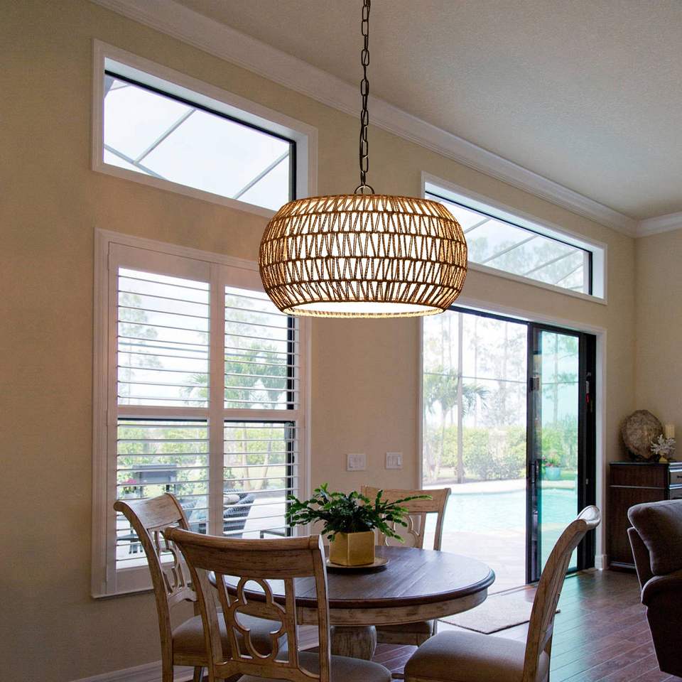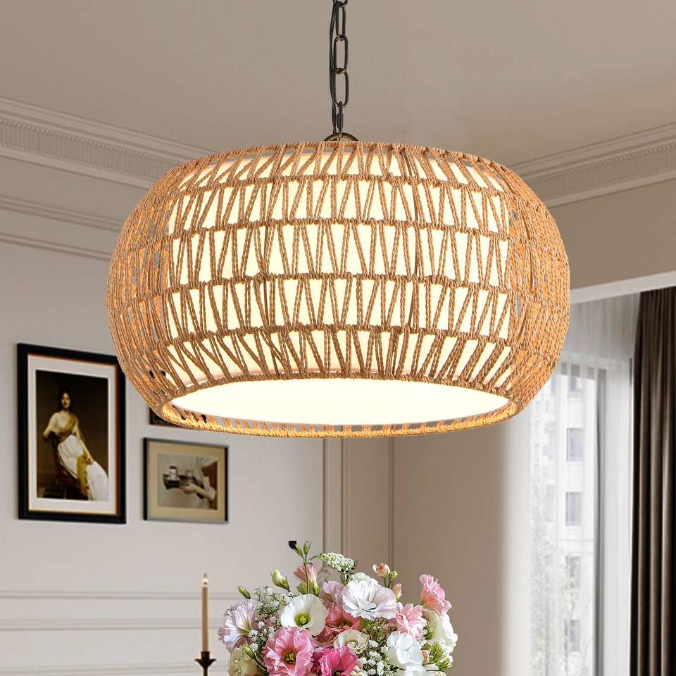 Lampadario a sospensione Boho Chic da 18 pollici, altezza regolabile, corda in iuta intrecciata, 60W max, attacco E26, plafoniera.