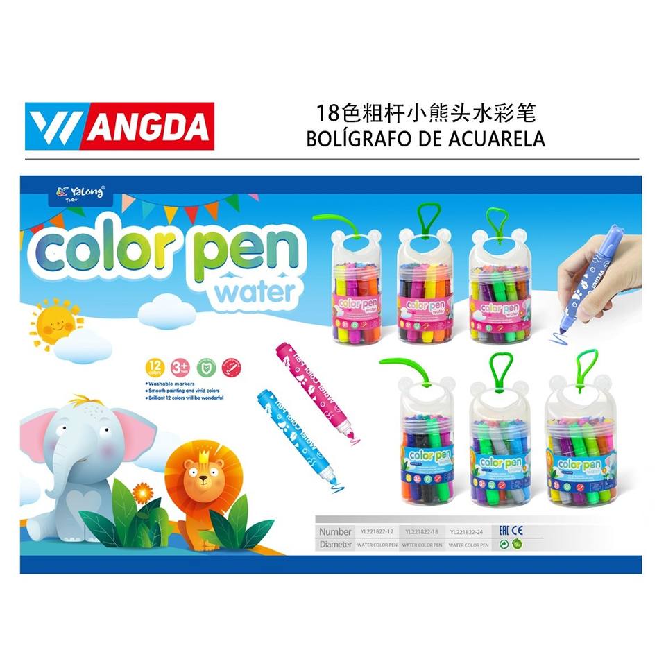 18-Color Bear Head Watercolor Pen with Thick Stem Set for Paper and Canvas Painting Artist Medium Water Color Paints