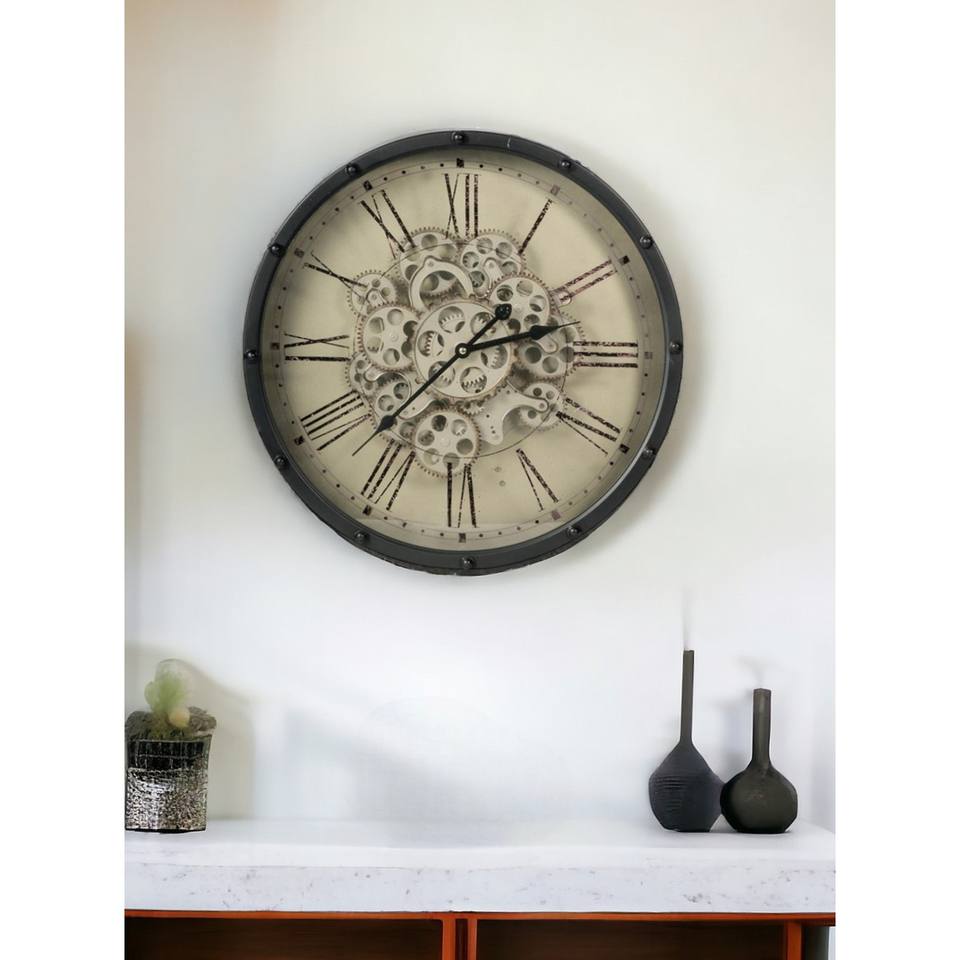18\" HMS Black and Ivory Vintage Gear Industrial Antique Style Wall Clock
