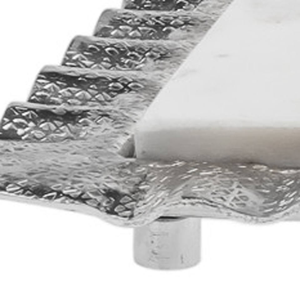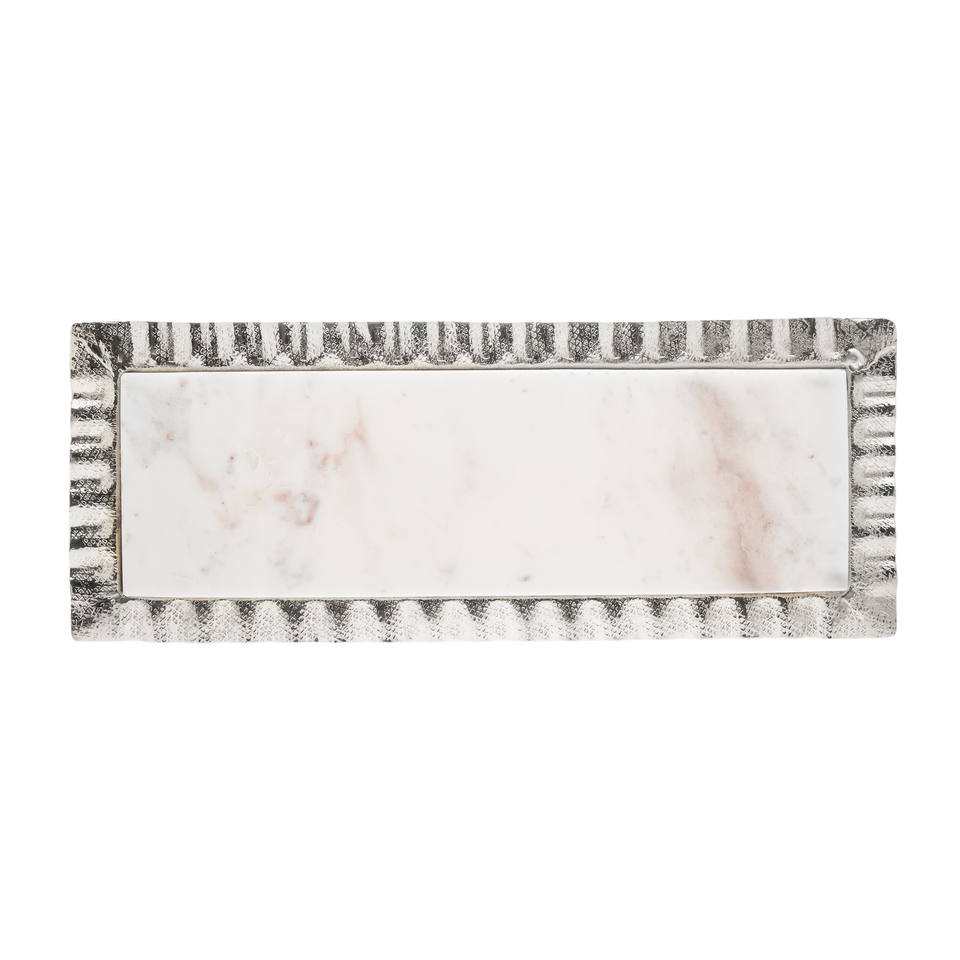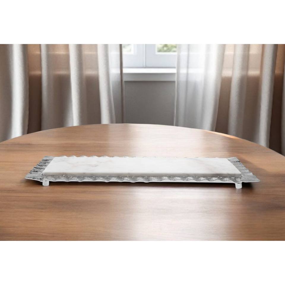 18\" HMS White and Silver Rectangular Marble Serving Tray