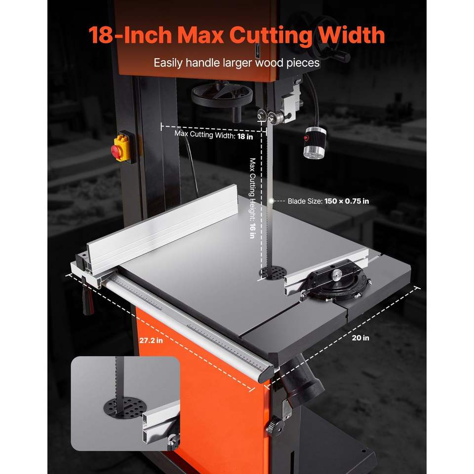 Sega a Nastro per Falegnameria da 18 Pollici con Motore da 2240W 3HP, Altezza Massima di Taglio 16 Pollici, Tavolo in Ghisa 27,2 X 20, Prodotto dell'Anno 2022