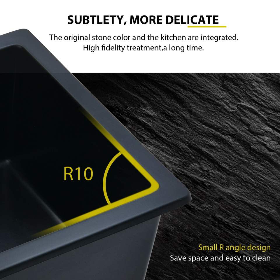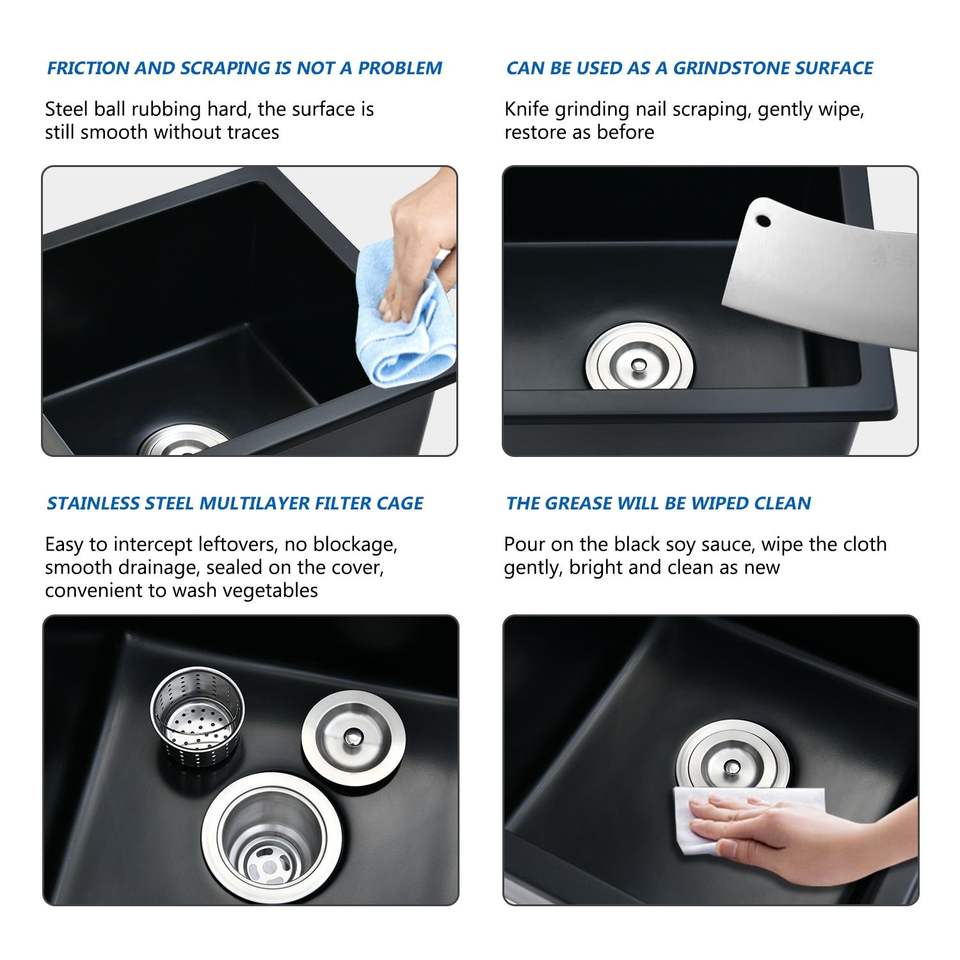 Lavello da Bar Sottopiano in Quarzo 45,7 cm L x 40,6 cm L con Cestello Filtrante per Uso in Cucina
