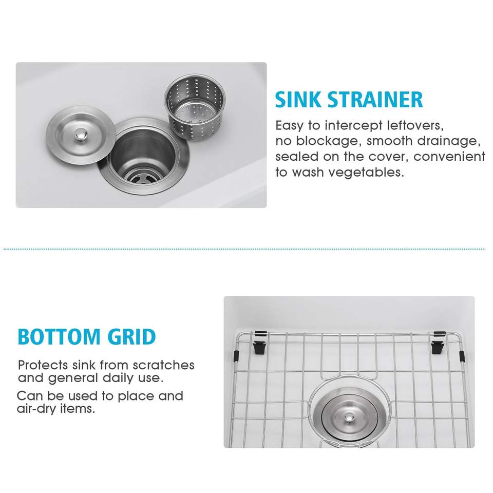 Lavello da Bar Sottopiano in Quarzo 45,7 cm L x 40,6 cm L per Cucina con Griglia e Filtro Inclusi