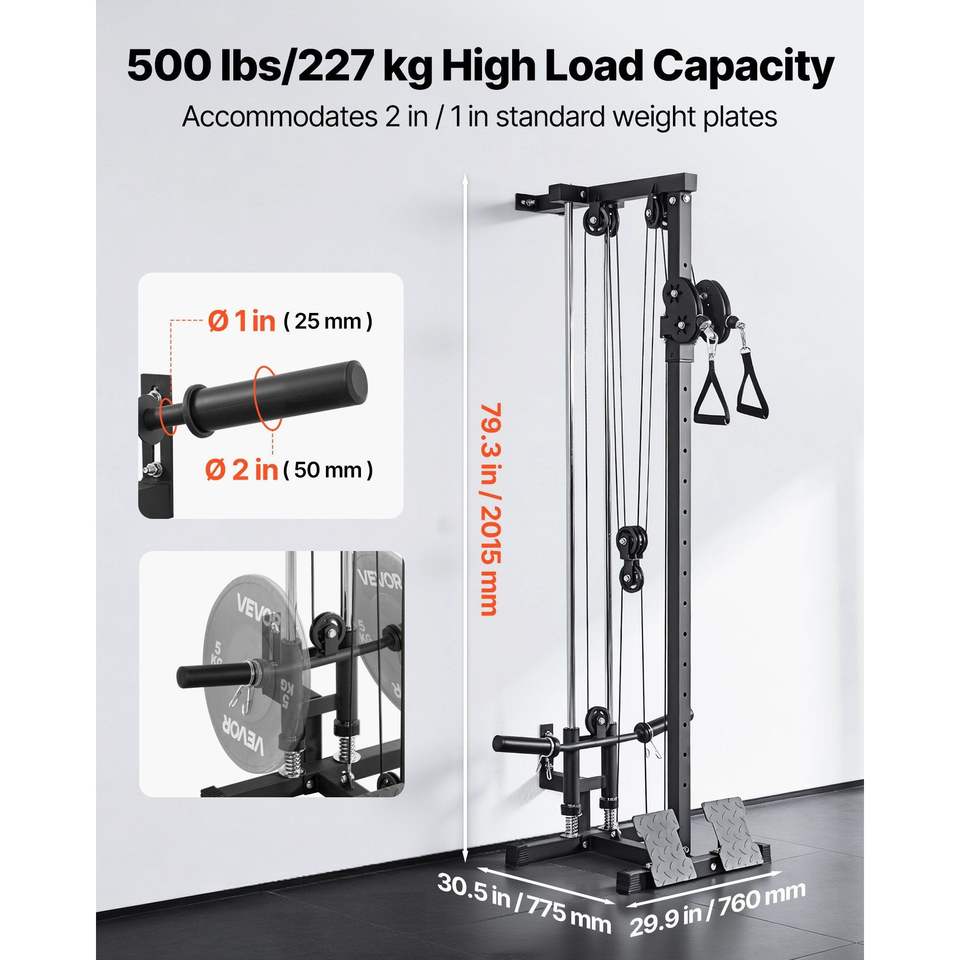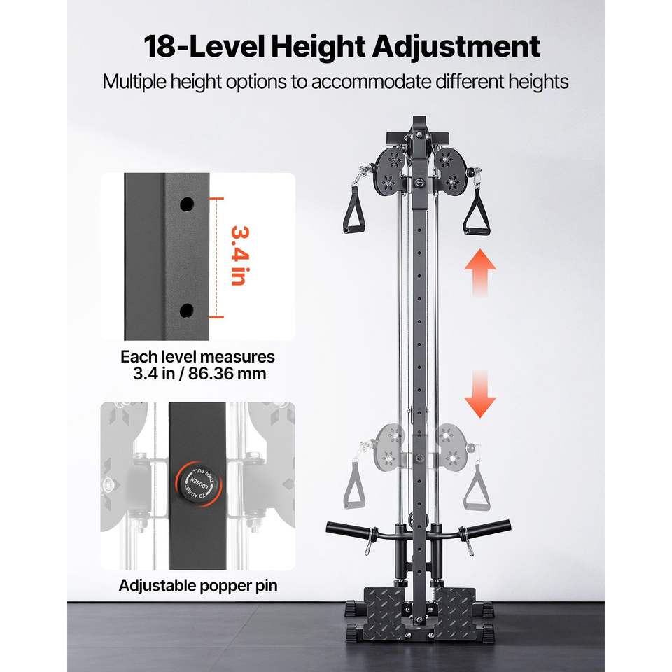 Macchina Lat Pulldown a Parete con Regolazione Altezza a 18 Livelli, Sistema 3-in-1 per Allenamento a Cavo e Remo, per Palestra Domestica