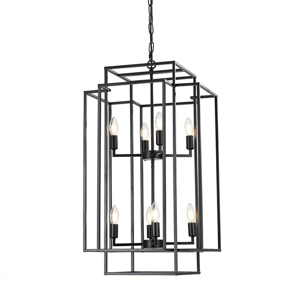 Modern 8-Light Black Iron Geometric Pendant Chandelier 18 In Adjustable Hanging Light For Living Room Dining Room