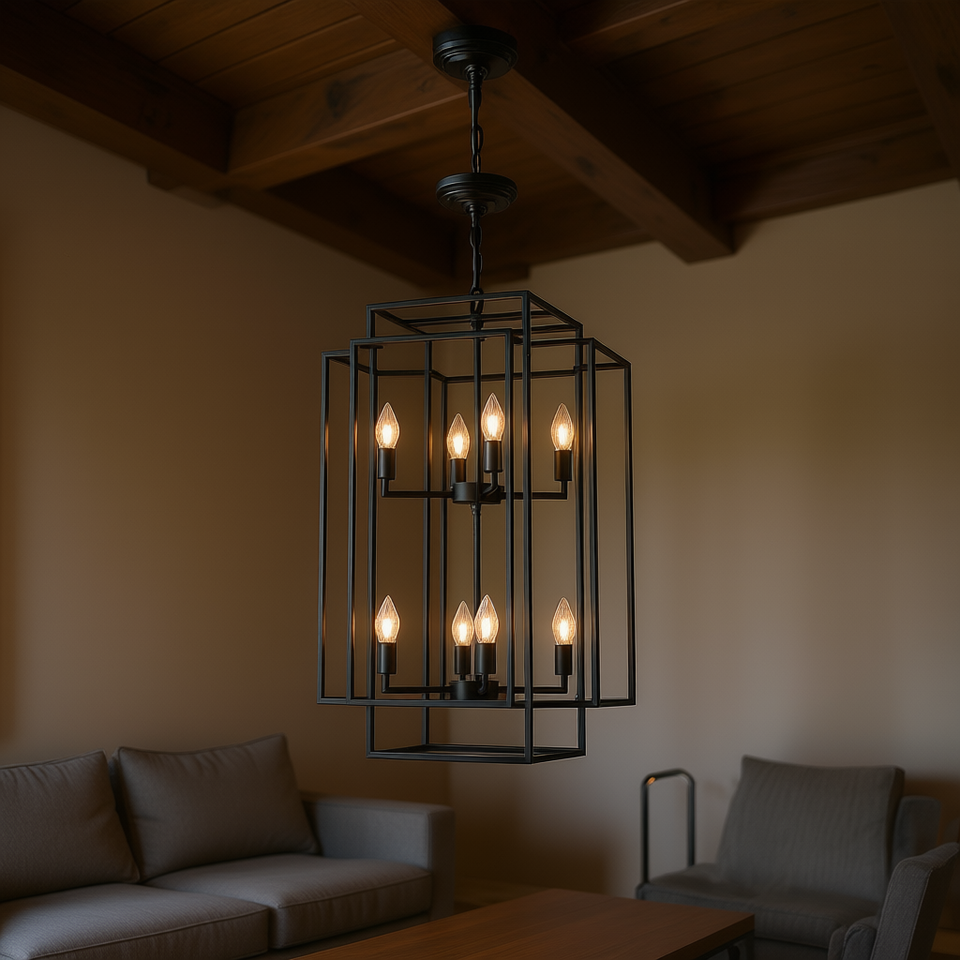 Modern 8-Light Black Geometric Pendant Chandelier Metal Frame Adjustable Hanging Light for Living Room Dining Room