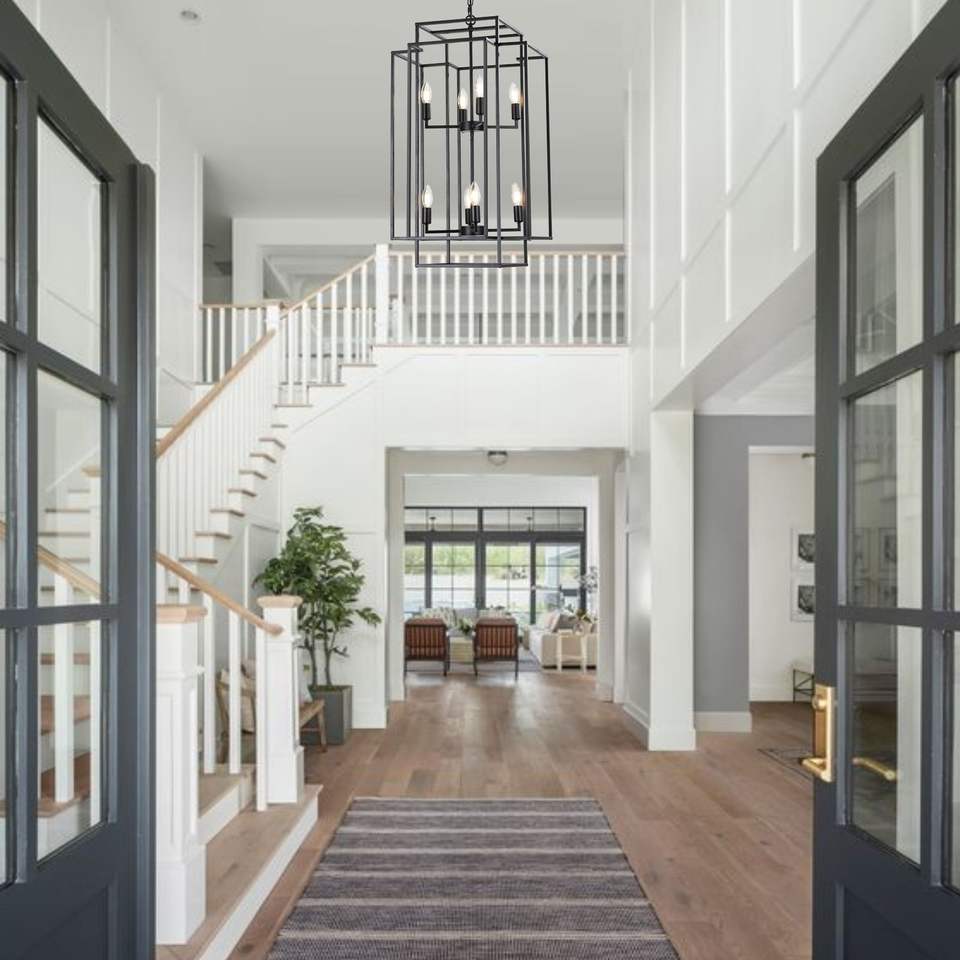 Lampadario a sospensione moderno geometrico da 18 pollici, 8 luci, nero, con struttura in metallo industriale, regolabile, W1340142527/L1018B