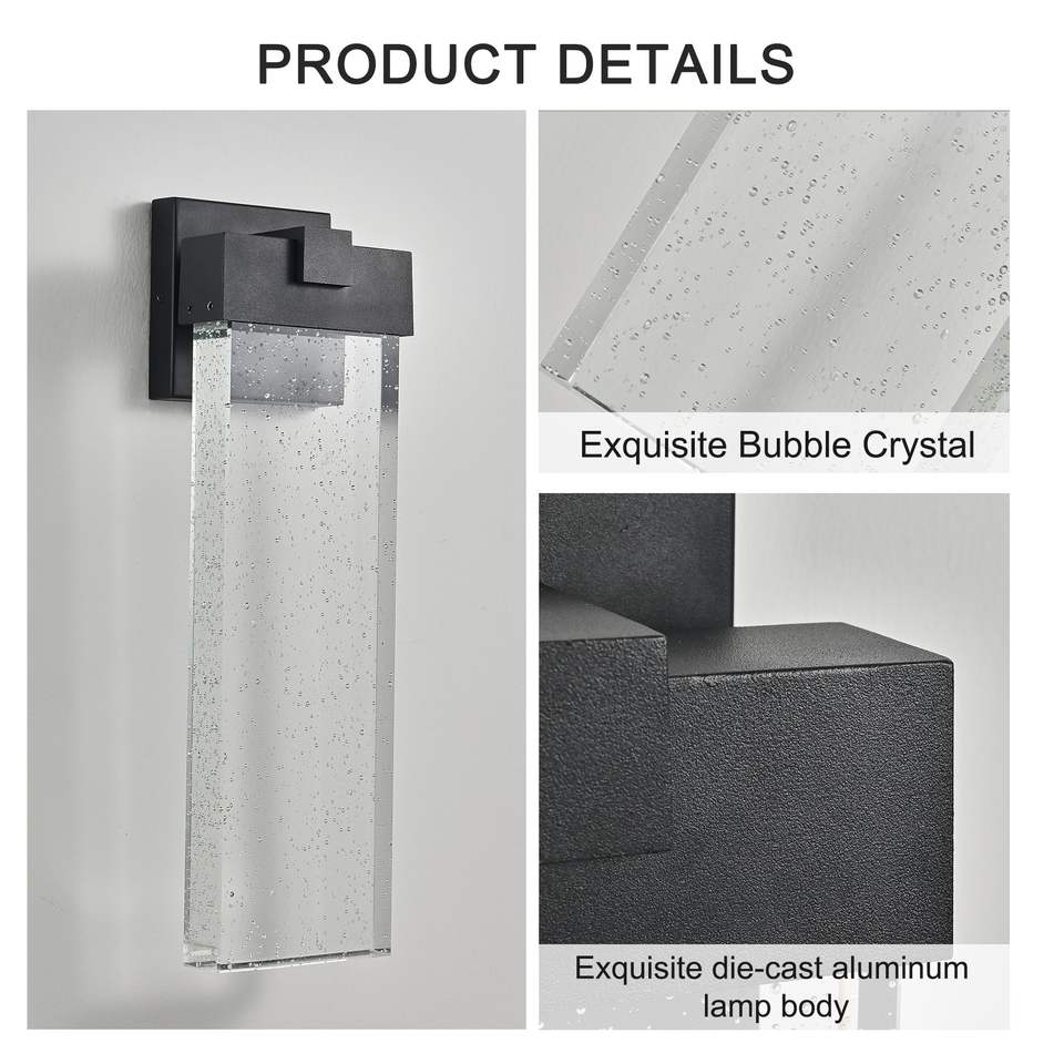 Applique da Esterno Moderna da 18 Pollici, Impermeabile, con LED da 12W e Cristalli a Bolle, Finitura Nera, Confezione da 1, di Dow