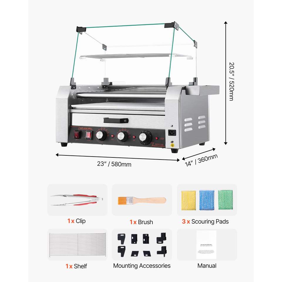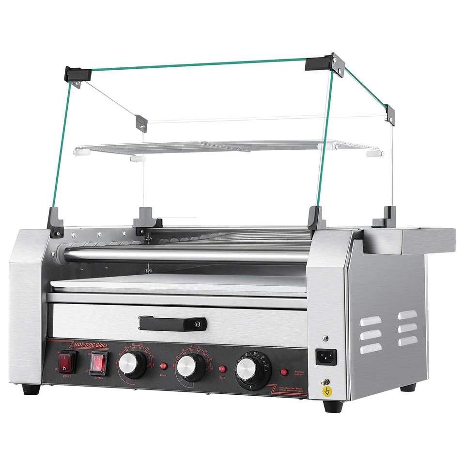 Macchina per Hot Dog in Acciaio Inox con 7 Rulli, 1200W, Scaldapane per Hot Dog, 3 Temperature, Attrezzatura per Riscaldamento e Mantenimento