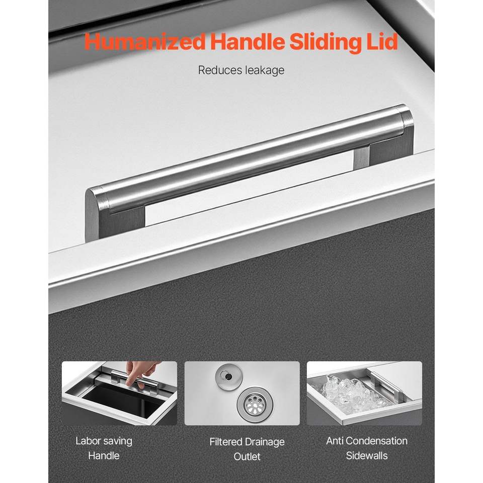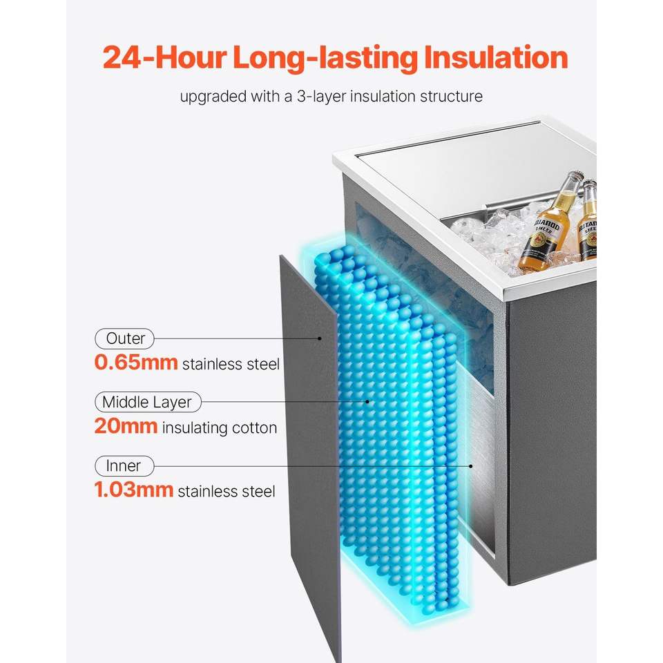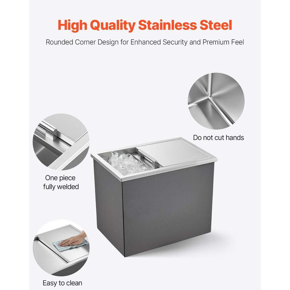 Contenitore Refrigerante Commerciale in Acciaio Inox 18 x 12 x 15 Pollici, Capacità 28,6 Quarti, con Coperchio Scorrevole per Esterni
