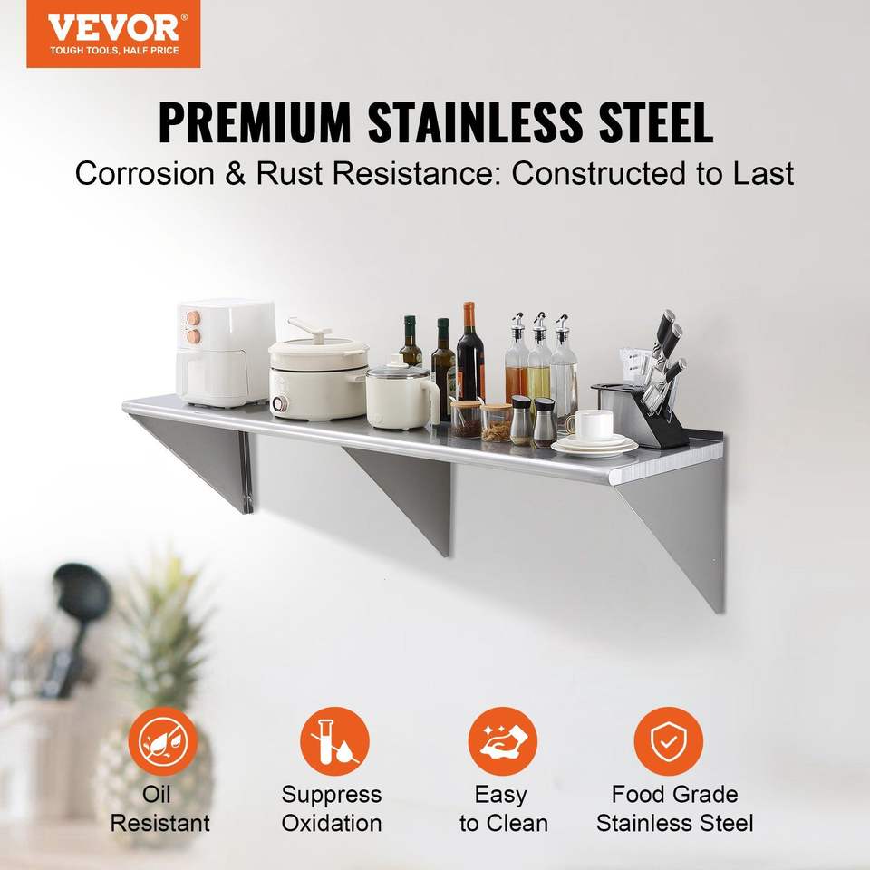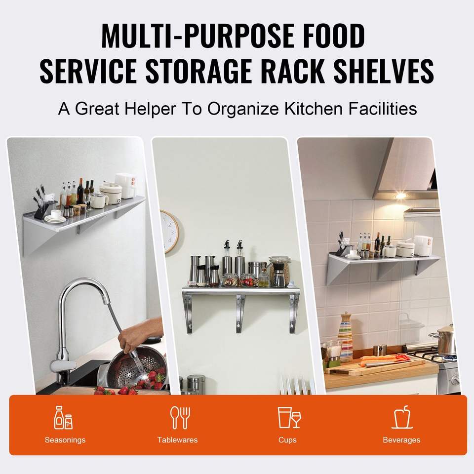 18\" X 72\" Stainless Steel Wall Mounted Floating Shelving Commercial Heavy Load Capacity 500 Lbs 18\" X 72\" Wall Shelves