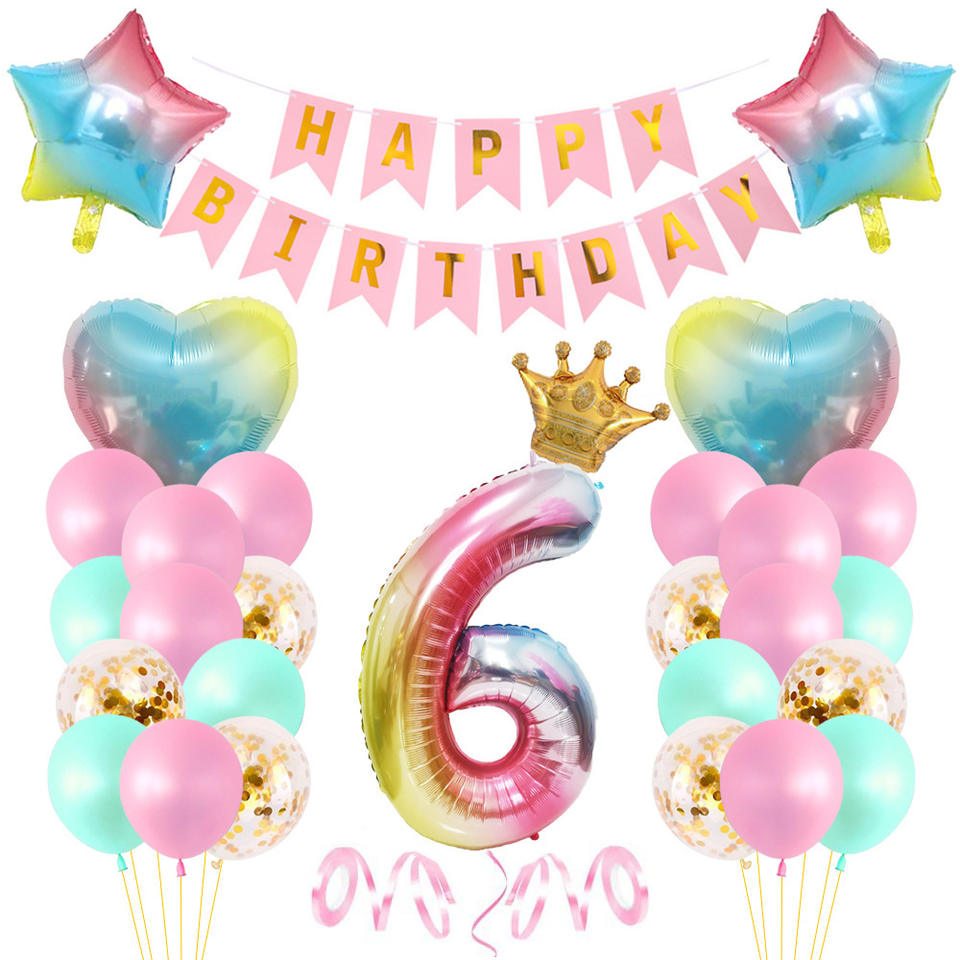 Set di compleanno per bambini con pellicola in alluminio arcobaleno gradiente da 18 pollici con tema sirena.