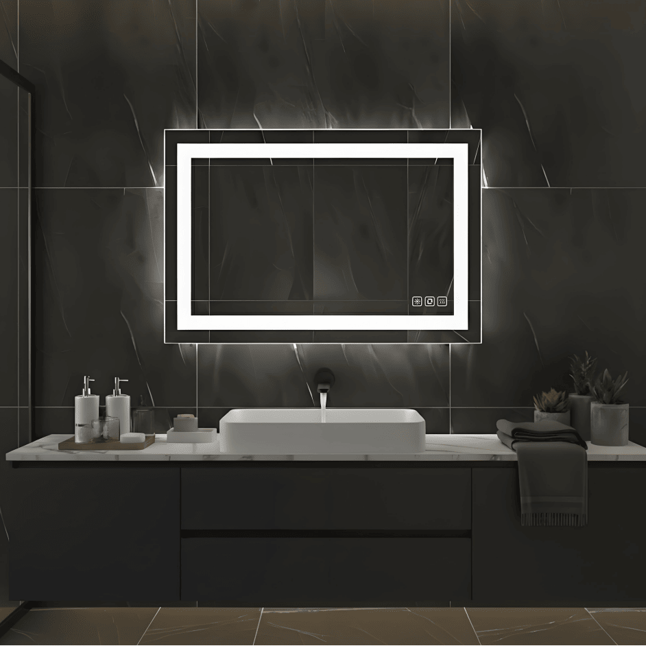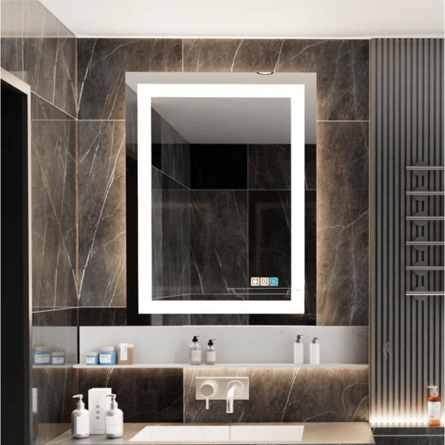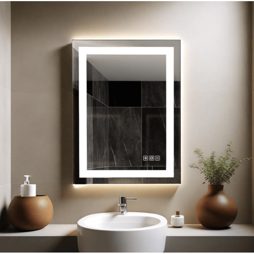Specchio LED da Bagno Rettangolare 18"x24" da Parete con Funzioni Antiappannamento e Antigraffio, Vetro Temperato con Cornice e Specchio Integrato