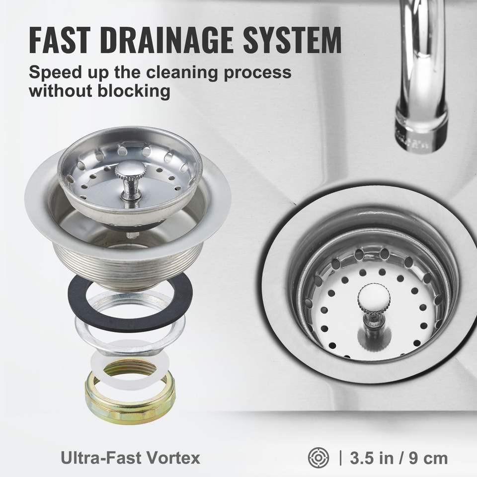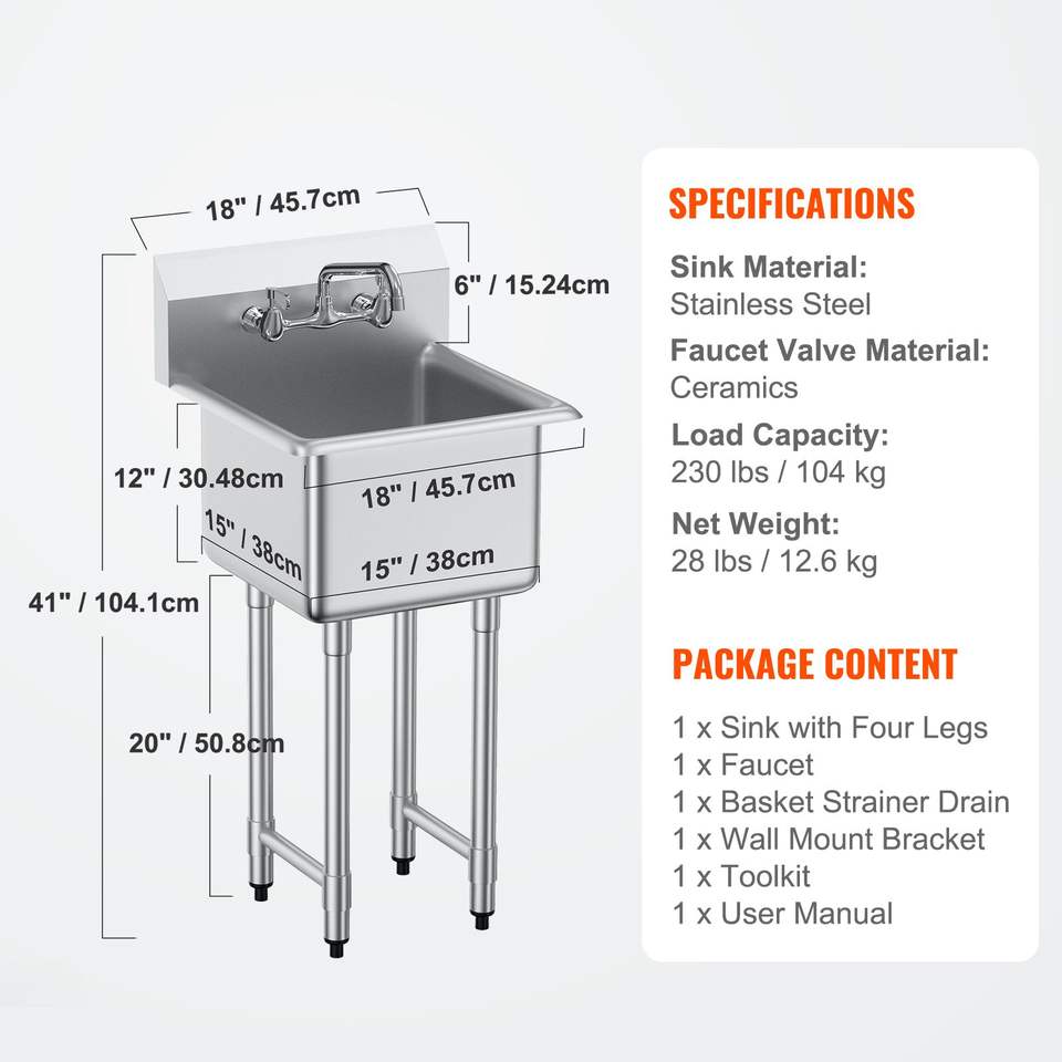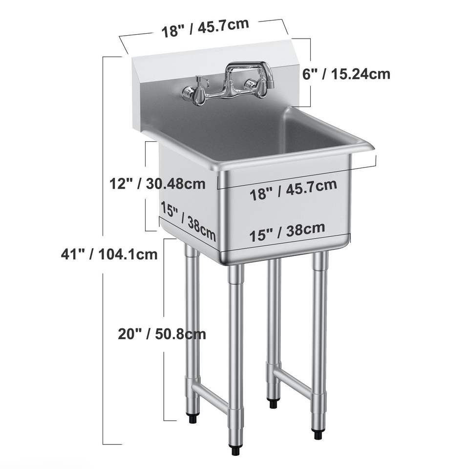 Lavello Commerciale da Cucina 18"x41" in Acciaio Inox a Compartimento Singolo con Rubinetto e Gambe, Lavello Piccolo Autoportante