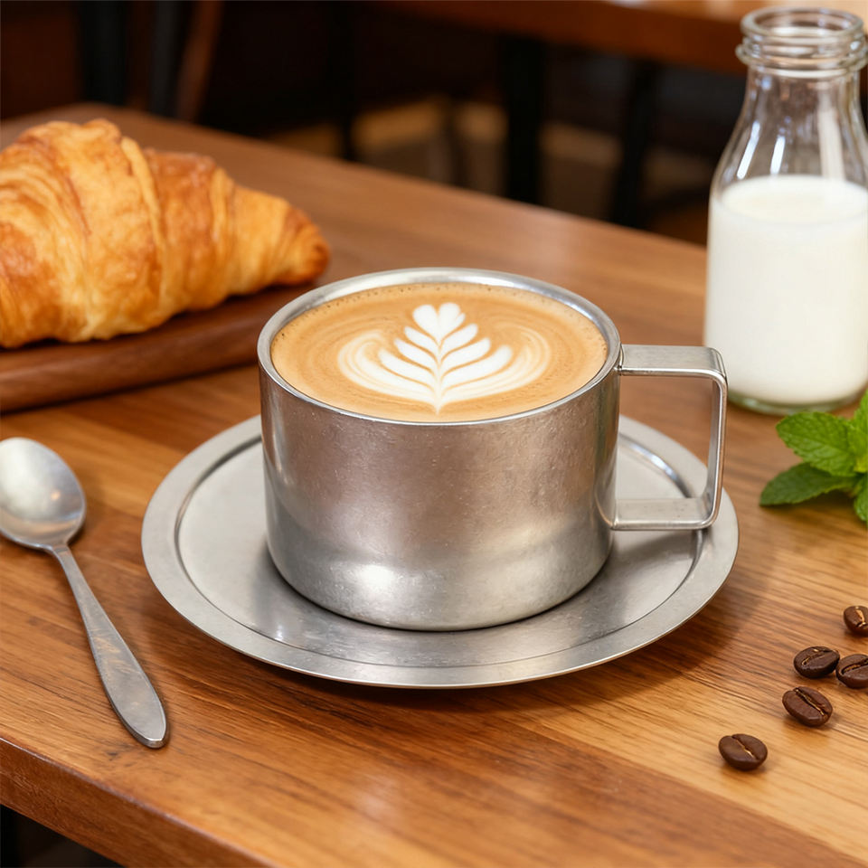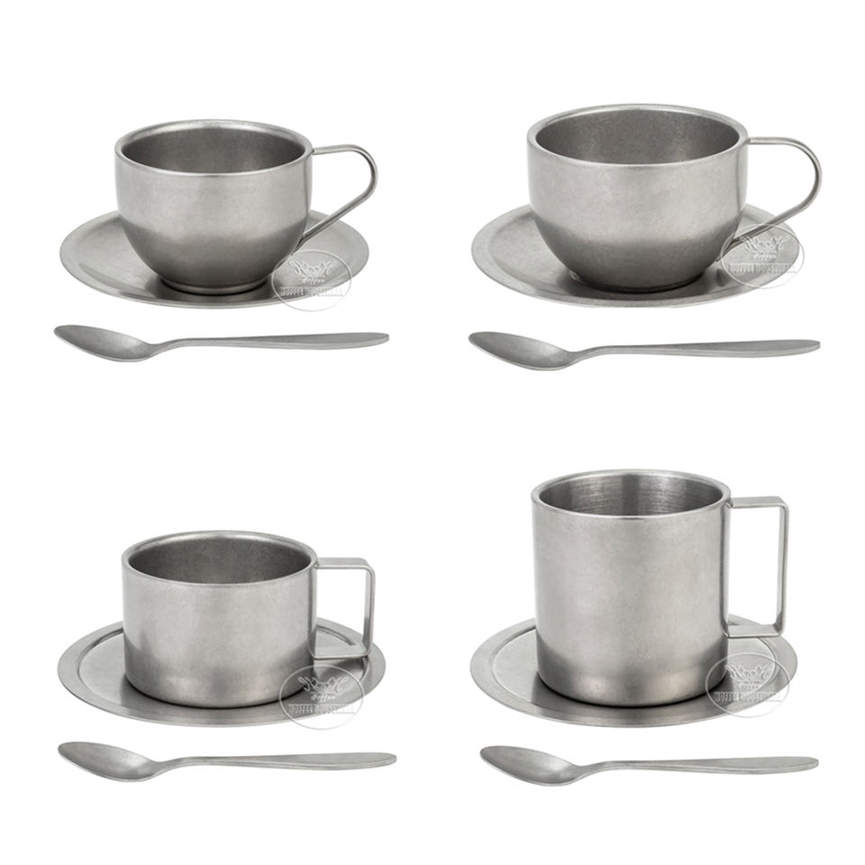180-280ml Vintage Frosted Metal Coffee Cup Set Food-grade Stainless Steel Tea Cappuccino Espresso Cups with Saucer Spoon