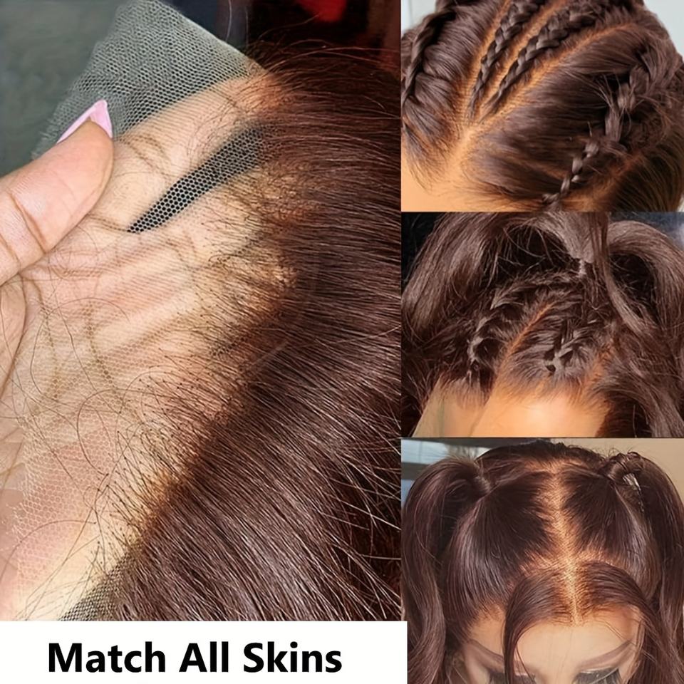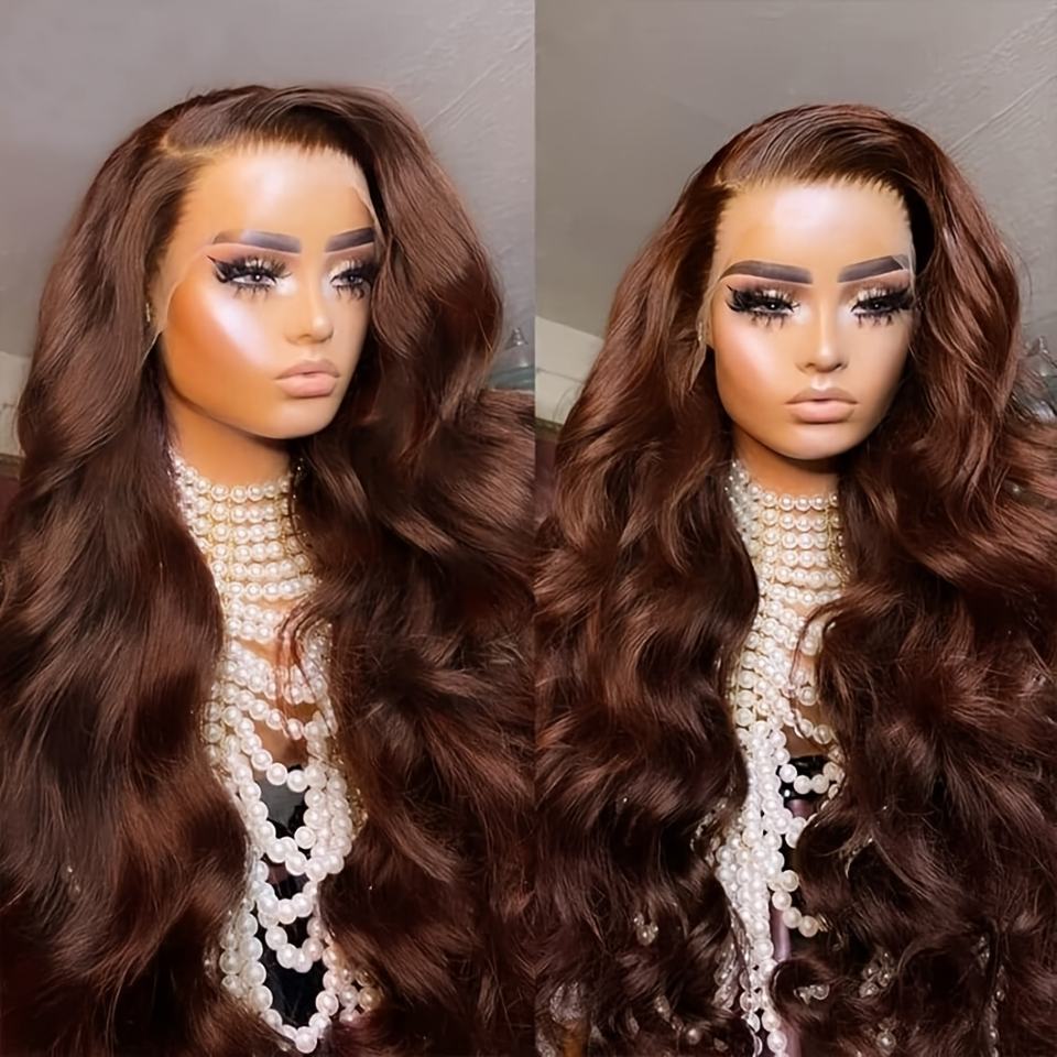 Parrucca anteriore in pizzo con onda di 180% densità marrone cioccolato-13x4 HD umano trasparente con capelli Pre-strappati, colore #4