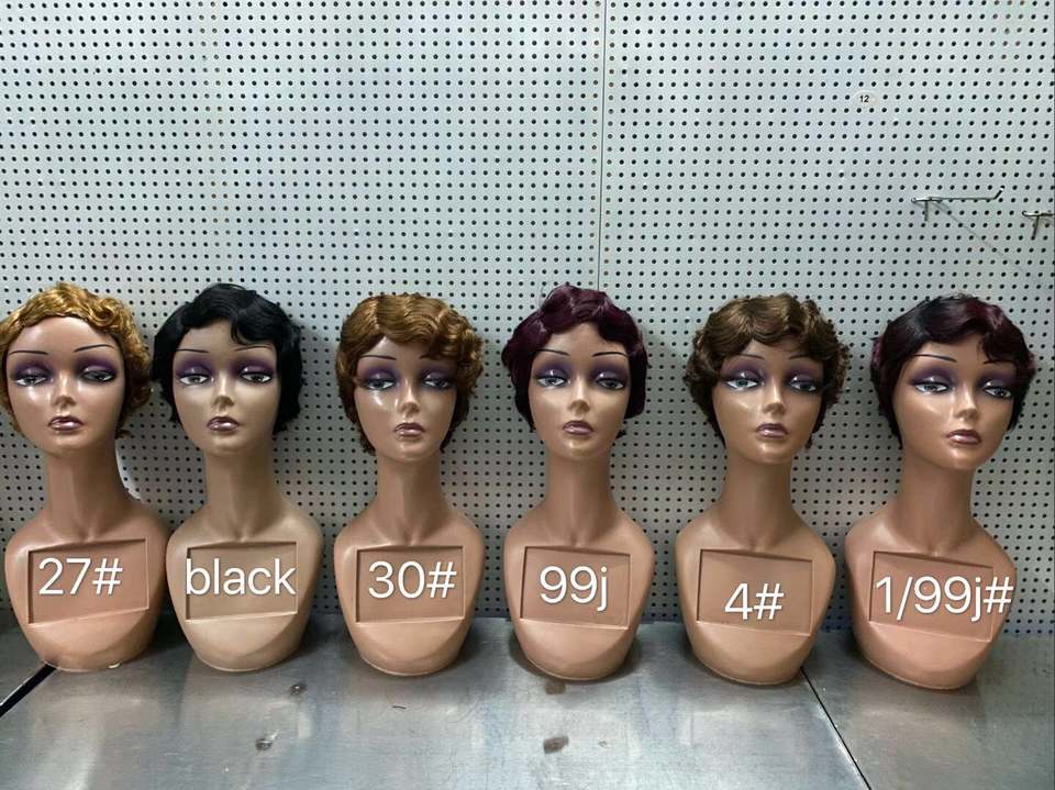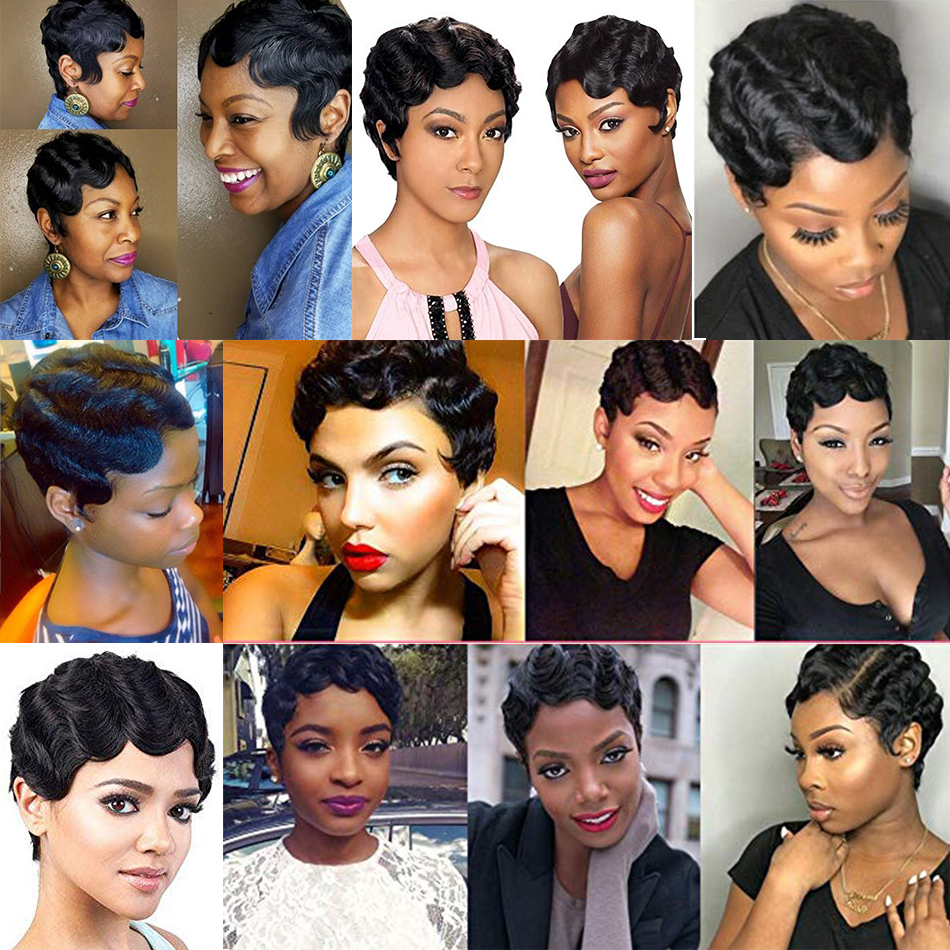 Parrucca in Capelli Umani Vergini 180% Densità, Ricci o Lisci, Molto Corta, Doppio Filamento, per Macchina da Cucire Industriale, Cuticole Allineate