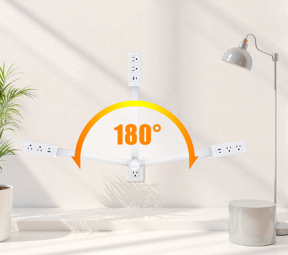180 ° Prolunga Girevole per Prese Elettriche, Multipresa Sicura con Porte USB e Cavo Flessibile