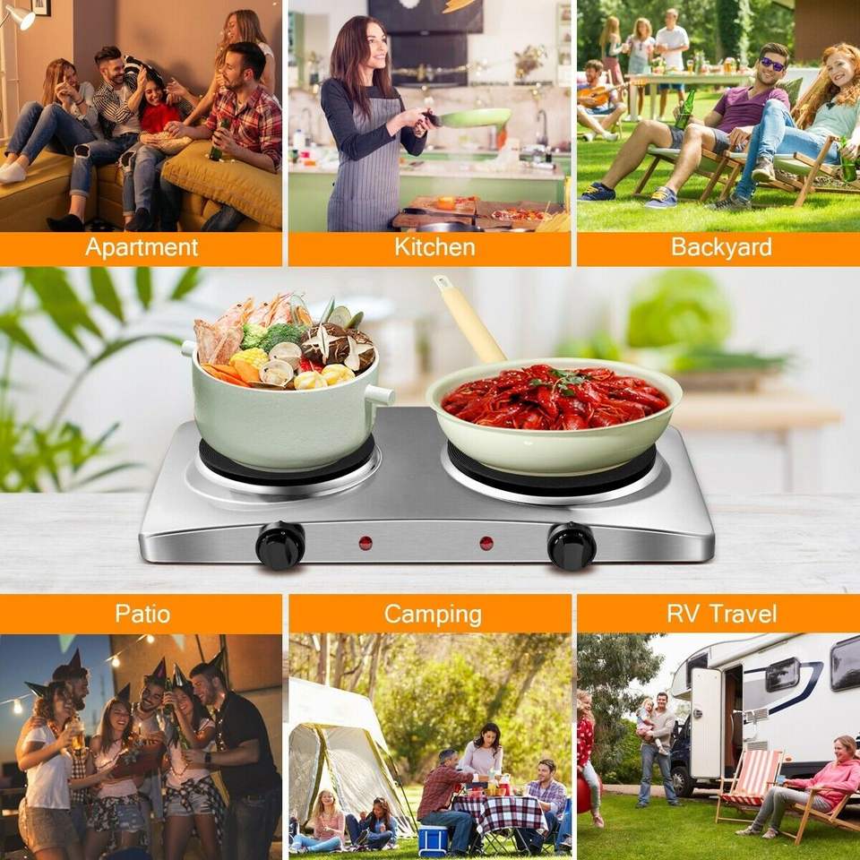 Piastra Elettrica Doppia da 1800W, Fornello da Banco ad Alta Potenza, Attrezzatura da Cucina