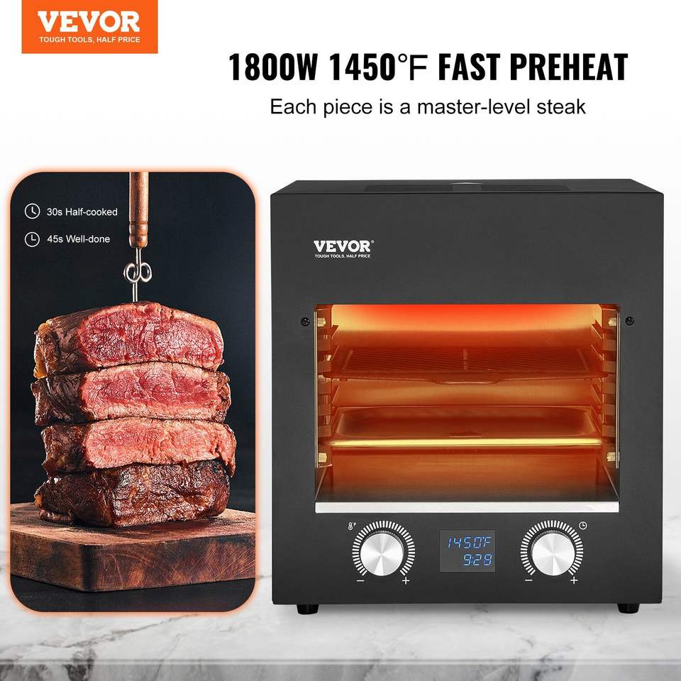 Griglia Elettrica per Bistecche a Infrarossi Senza Fumo 1800W, Griglia in Acciaio Inox 1450 Fahrenheit, Fornello Elettrico Regolabile a 6 Livelli