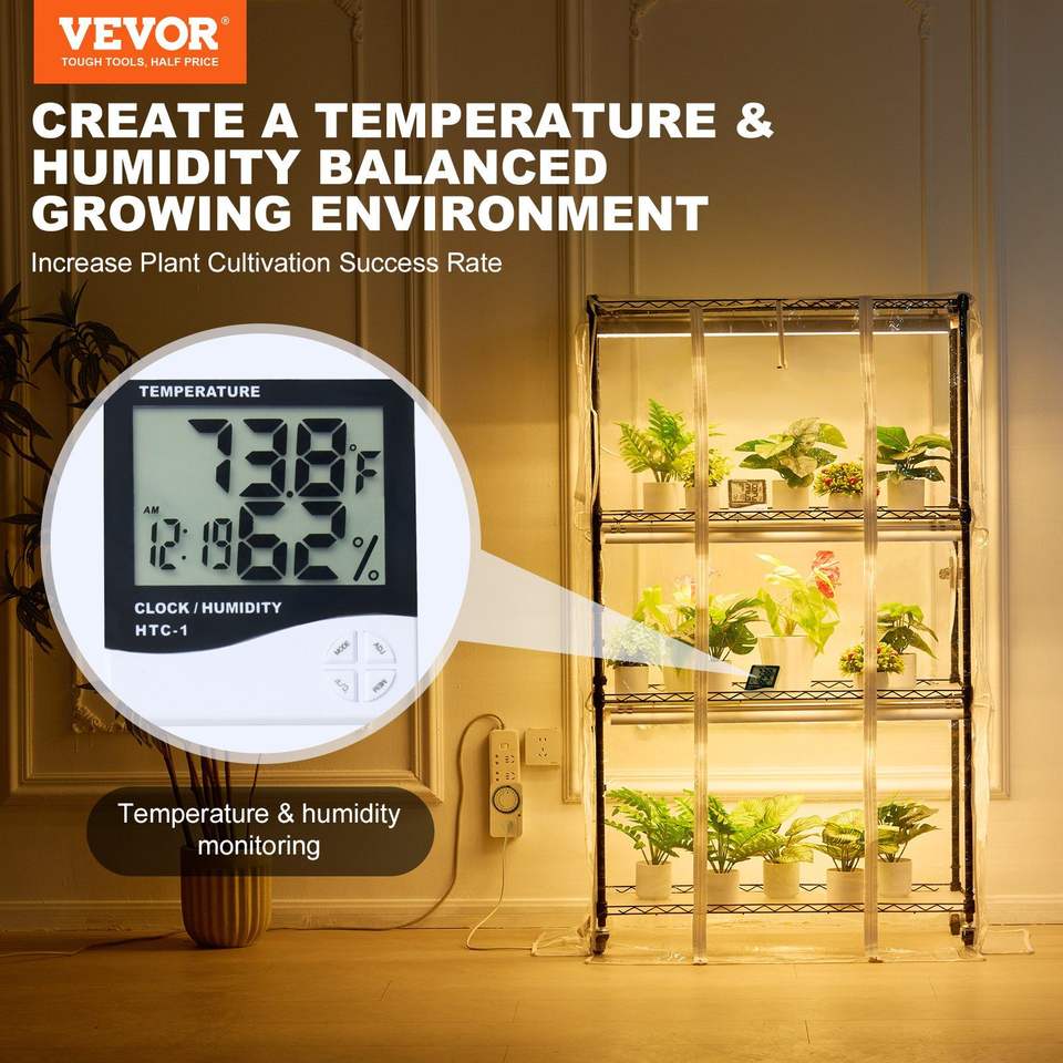 Supporto per Piante a 4 Livelli da 180W con Luce di Crescita a Spettro Completo, Termometro, Copertura e Ripiano per una Migliore Leggibilità, Illuminazione da Giardino
