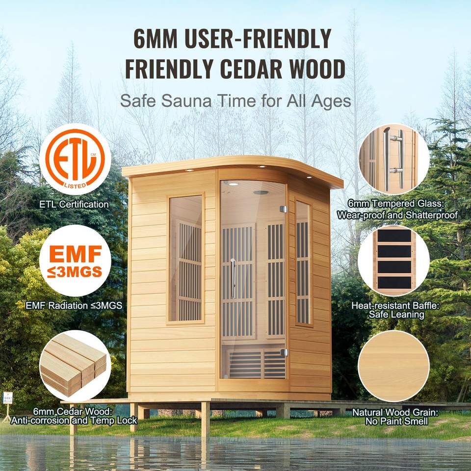 1850W casa Sauna Spa lontano infrarosso stanza d'angolo in legno per 2 persone