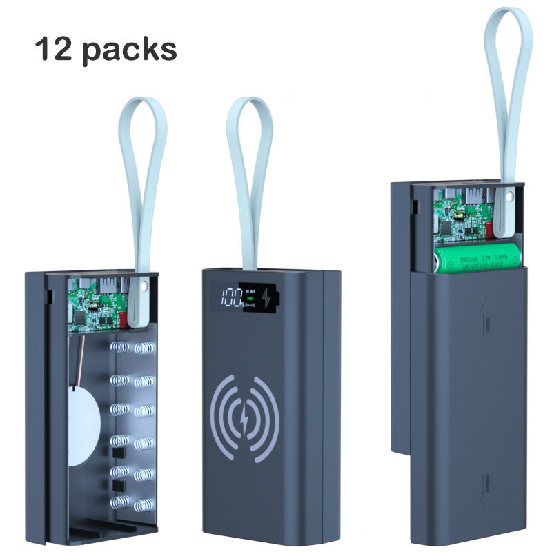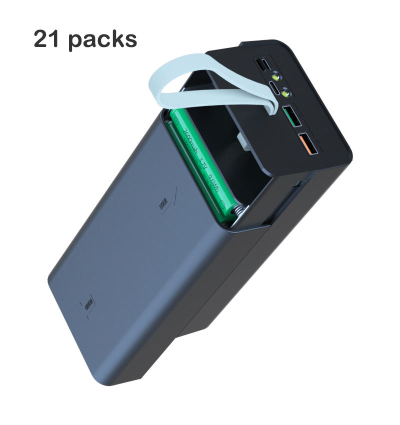 Custodia Power Bank Fai-da-te Rimovibile 18650 con Display LED PD QC 10W 18W 22.5W