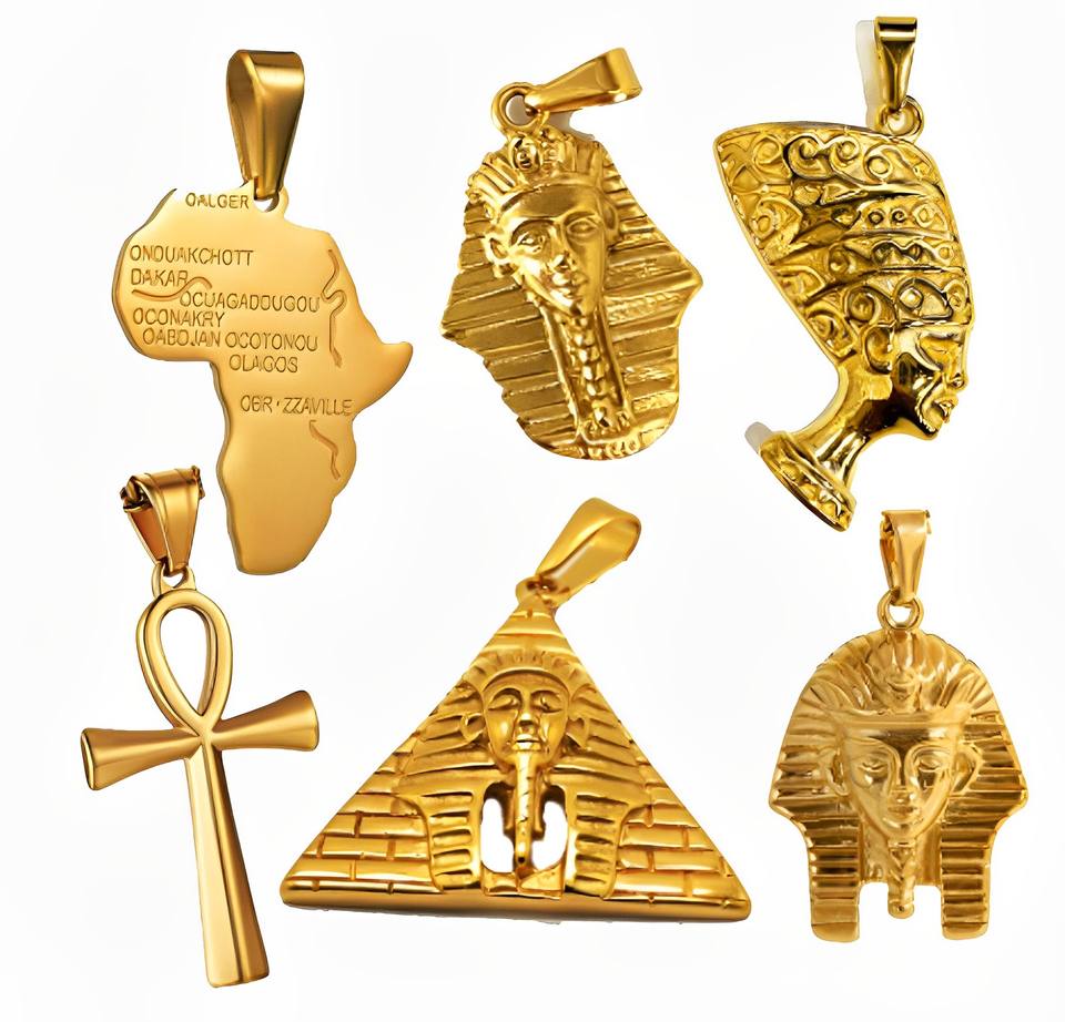Ciondolo faraone piramide egiziana in oro 18 carati zircone in acciaio inossidabile Tut Feather Jewelry donna faraone egiziano Tut Portrait Gift