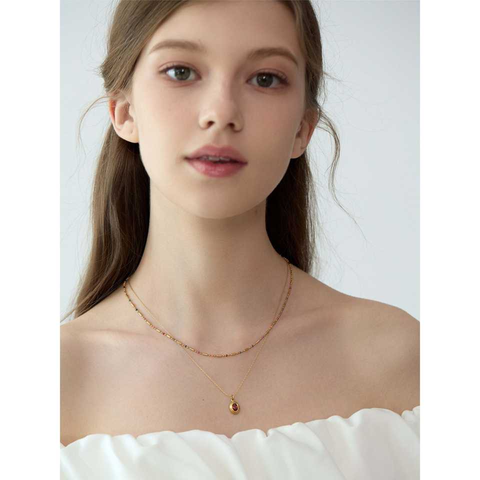 Collana Sottile Delicata Placcata Oro 18K con Catena Arcobaleno e Perline Geometriche, con Ciondolo Inossidabile, Idea Regalo