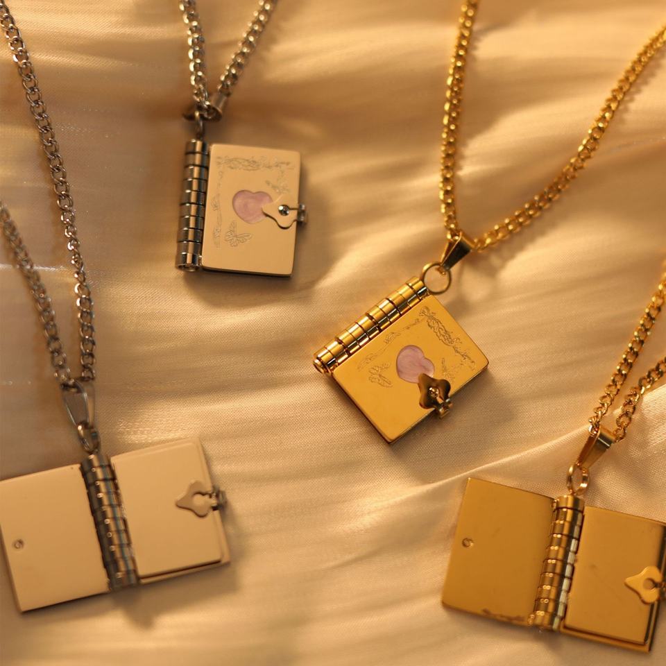 18K Gold Plated Elegant Book Photo Box High Color Retention Stainless Steel Open-Close Locket Necklace