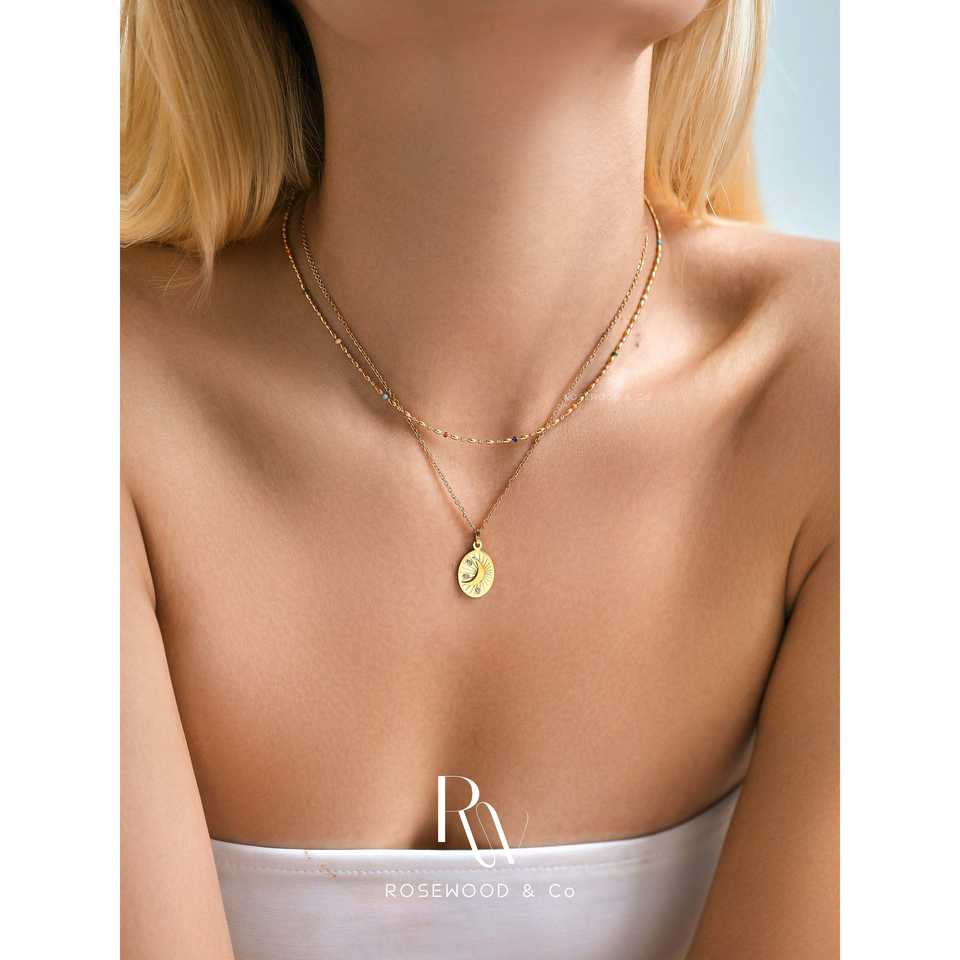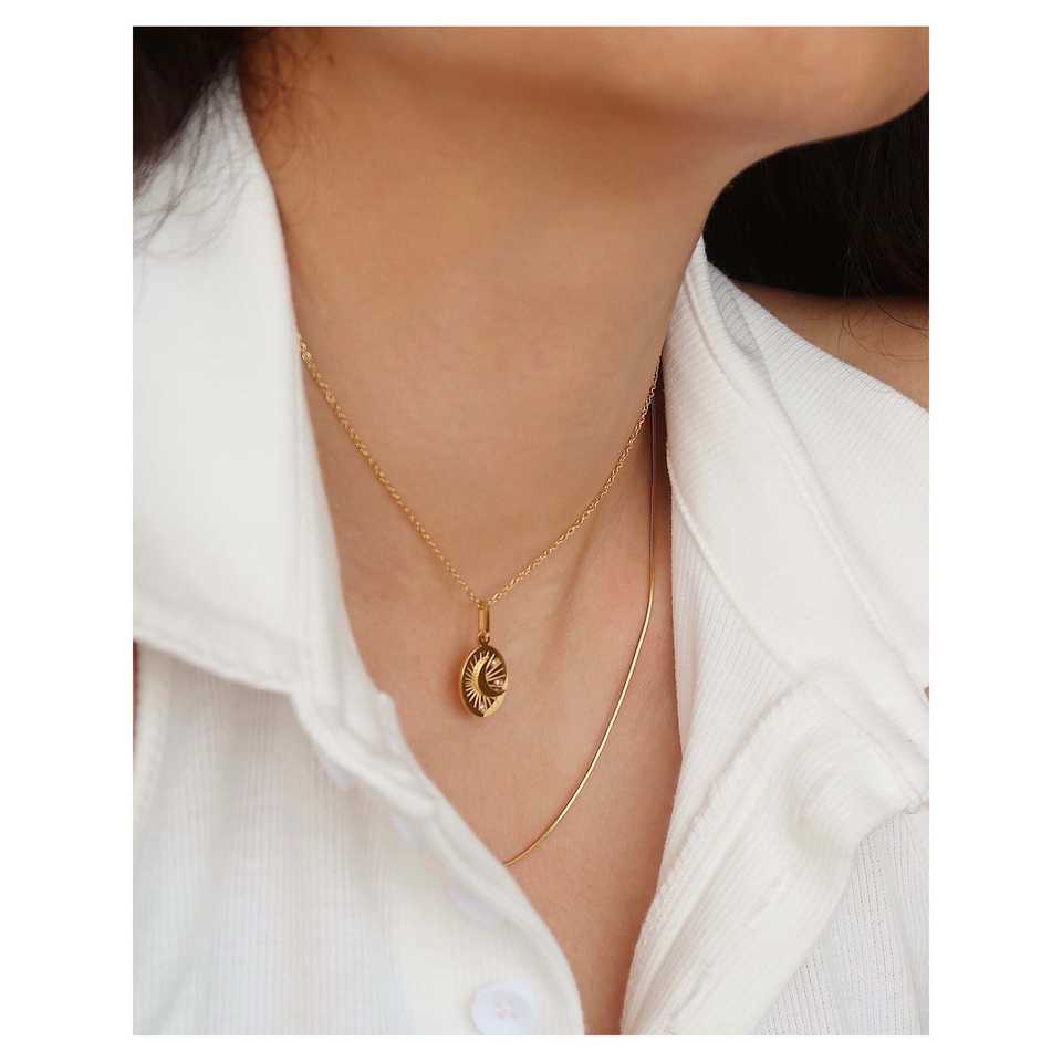 Collana con Pendente Luna e Stella Placcata in Oro 18K con Catena a Serpente, Gioiello Celestiale Minimalista, Regalo per Mamma e Design a Raggi di Stella