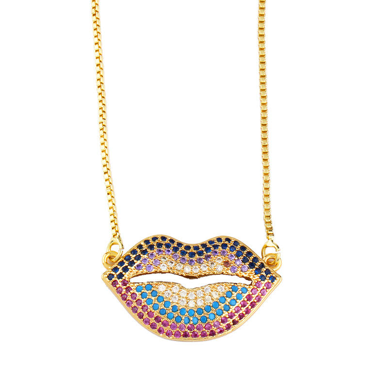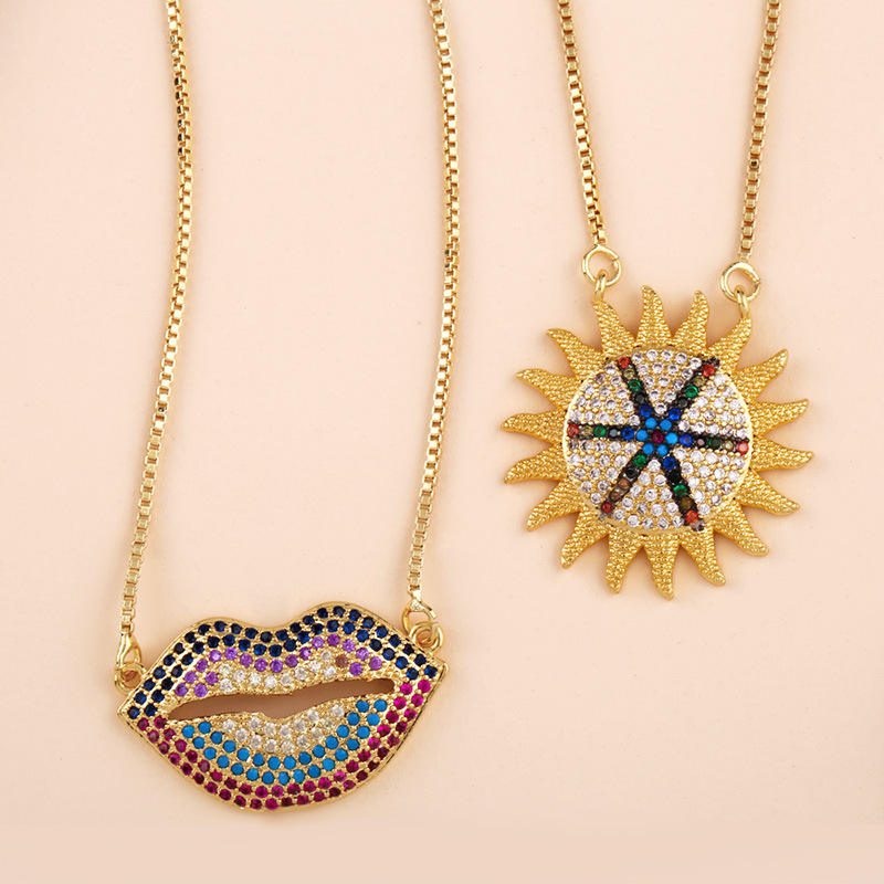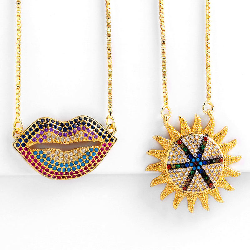 18K Placcato Oro Personalizzato Colorato Zircone Diamante Sexy Bocca Labbro Collana di semi di Girasole Pendente Della Collana Per Le Ragazze Regali