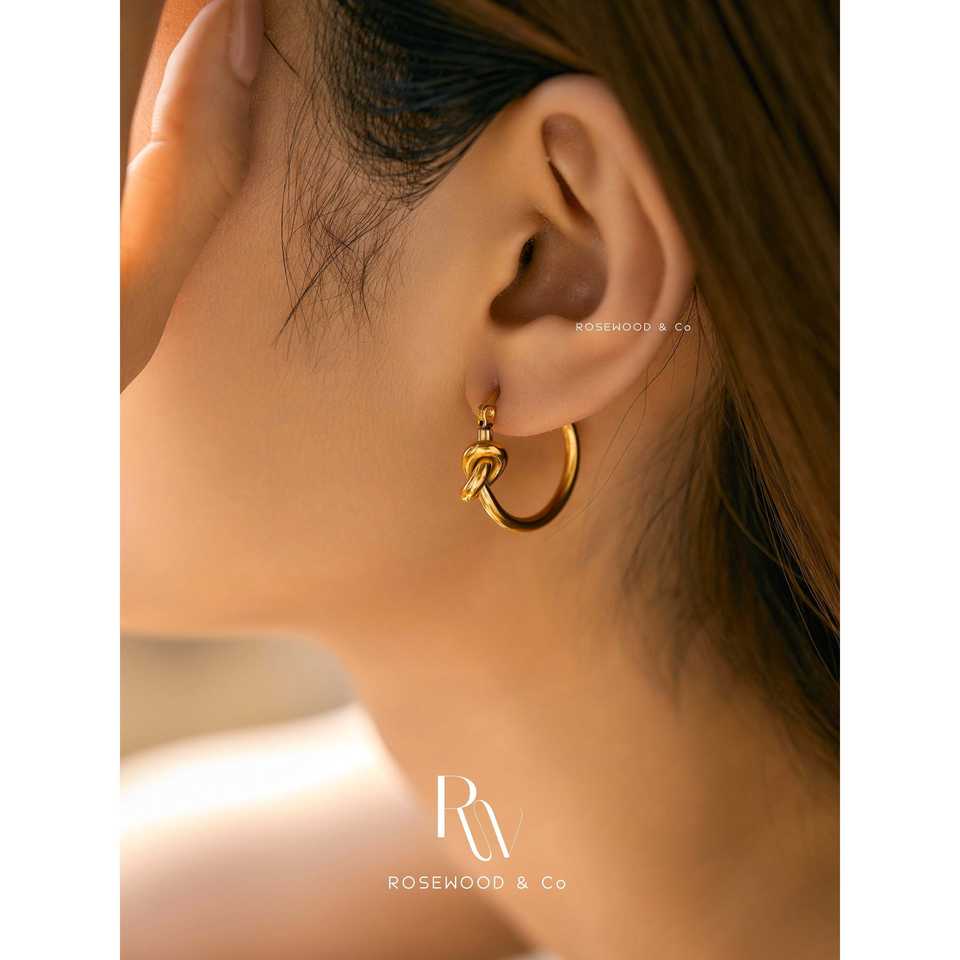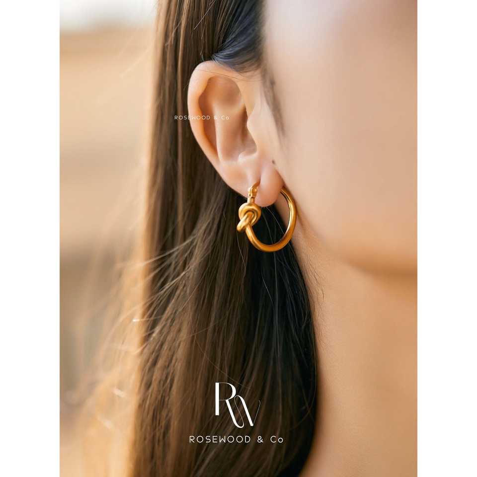 Orecchini a Cerchio Annodati Placcati Oro 18K - Orecchini Pendenti in Oro Inossidabile per Damigelle - Regalo di Moda