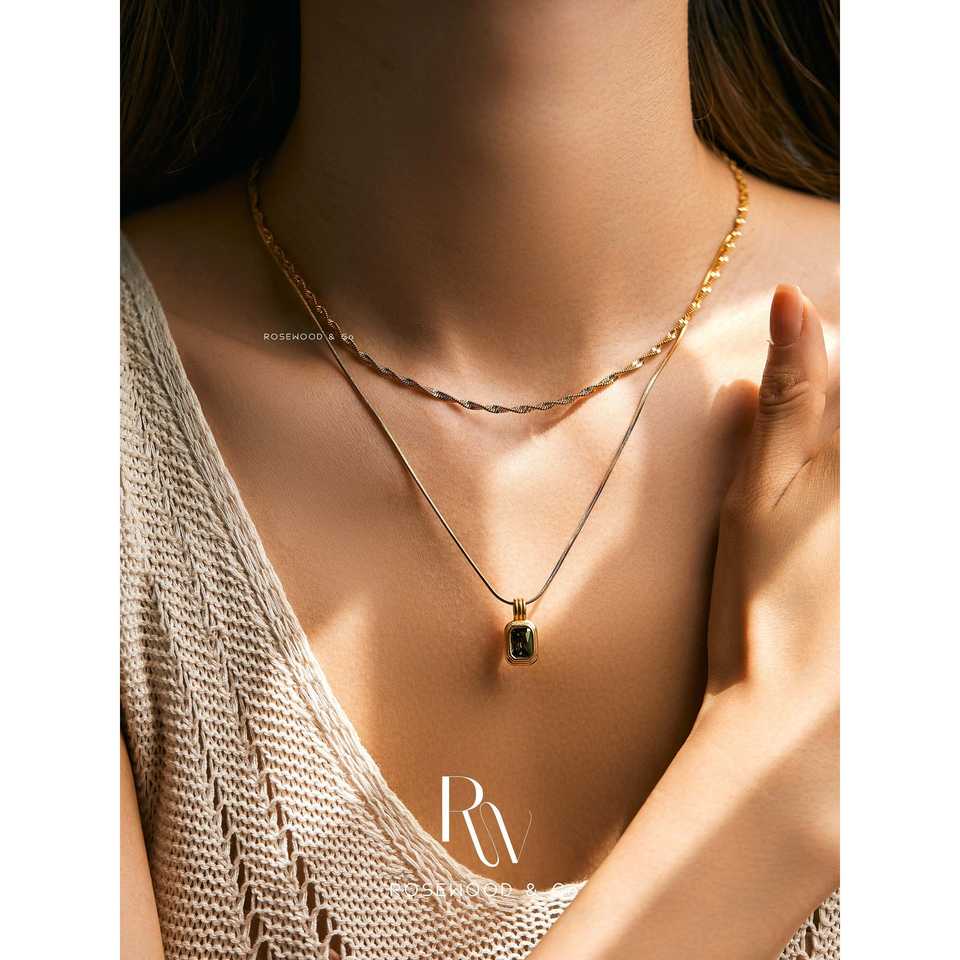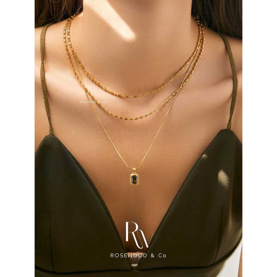 Collana con Pendente Quadrato Verde Oliva Placcato Oro 18K, Impermeabile, Collana a Strati Trendy da Donna, Regalo