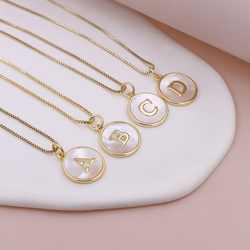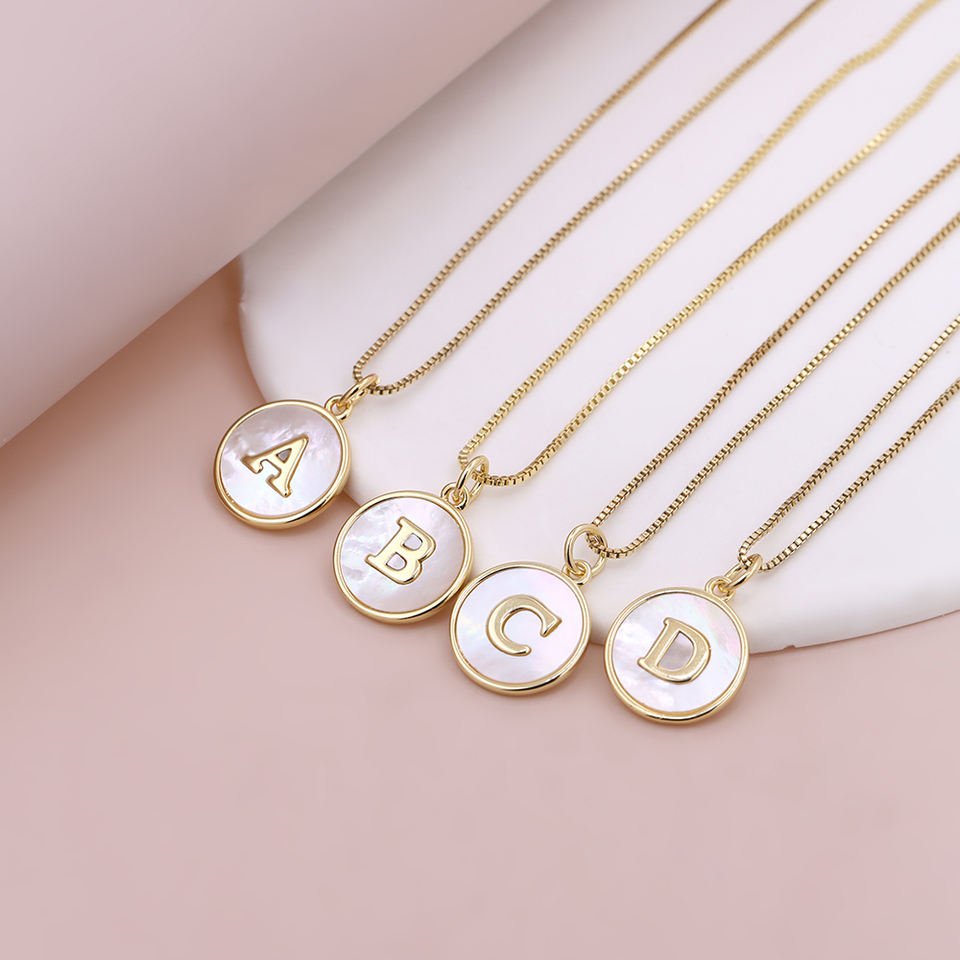 Collana con ciondolo a forma di lettera in conchiglia bianca placcata oro 18 carati, minimalista, da A a Z, gioiello alla moda, regalo di compleanno